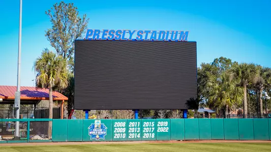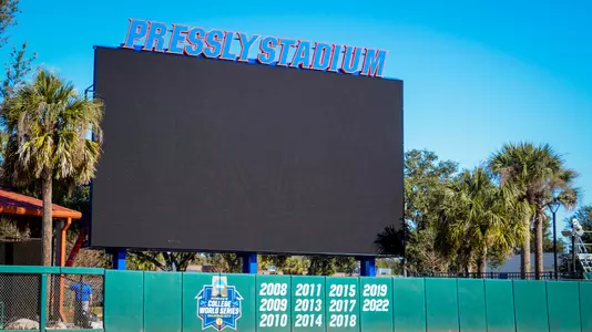 Katie Seashole Pressly Stadium, located on the corner of Hull and Museum Roads, is the home of Florida softball. Ground broke for the original stadium on Feb. 1, 1996, just a year before holding the first-ever UF softball game on Feb. 8, 1997. Originally built at a cost of $2.6 million, improvements to enhance the experience of Florida’s fans and student-athletes have been made to the stadium over the years since the stadium first opened.