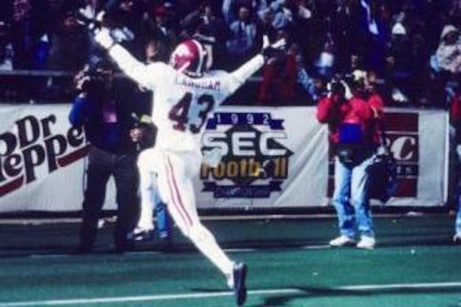 What happened: Cornerback Antonio Langham (pictured right) picked off UF senior quarterback Shane Matthews and returned the interception 27 yards with 3:18 to play to give the No. 2 Crimson Tide a victory that propelled them into the national-championship game against Miami. Langham's Tide-turner came after the No. 12 Gators, double-digit underdogs, rallied with two long drives for touchdowns against the nation's No. 1-ranked defense in the second half to erase a 14-point deficit and tie the game at 21 with 6:51 to go.