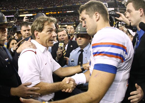What happened: The second-ranked Tide took control early and dominated late, ending No. 1 UF's dream of an undefeated season and repeat national championship, leaving Tebow on the sidelines in tears in his final SEC game. Running back Mark Ingram rushed 28 times for 113 yards and three touchdowns, keying a Bama offense -- with offensive coordinator Jim McElwain on the headsets -- that cranked out 490 yards against the nation's top-ranked defense. Tide quarterback Greg McElroy completed just 12 passes, but for 239 yards, with his lone touchdown toss a 17-yarder to Colin Peek midway through the third quarter to push Bama ahead 26-13. A Tebow interception early in the fourth period set up Ingram's put-away TD.