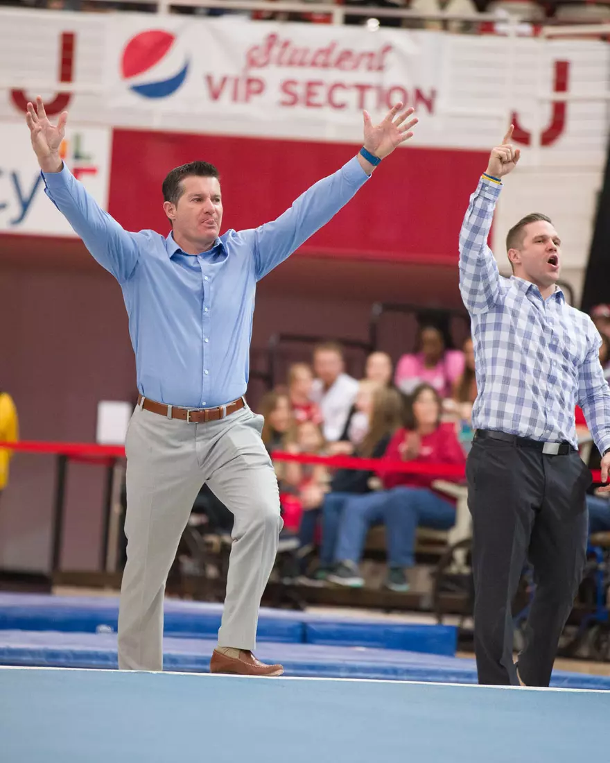 "I thought the performance tonight was good. It was a great start on bars – very aggressive. I was really happy to see this team start off on a really strong note. We had a little dip on vault as the nerves seemed to creep in a little bit, but they handled themselves well. We picked it up on floor and set the tone to finish the meet strong.