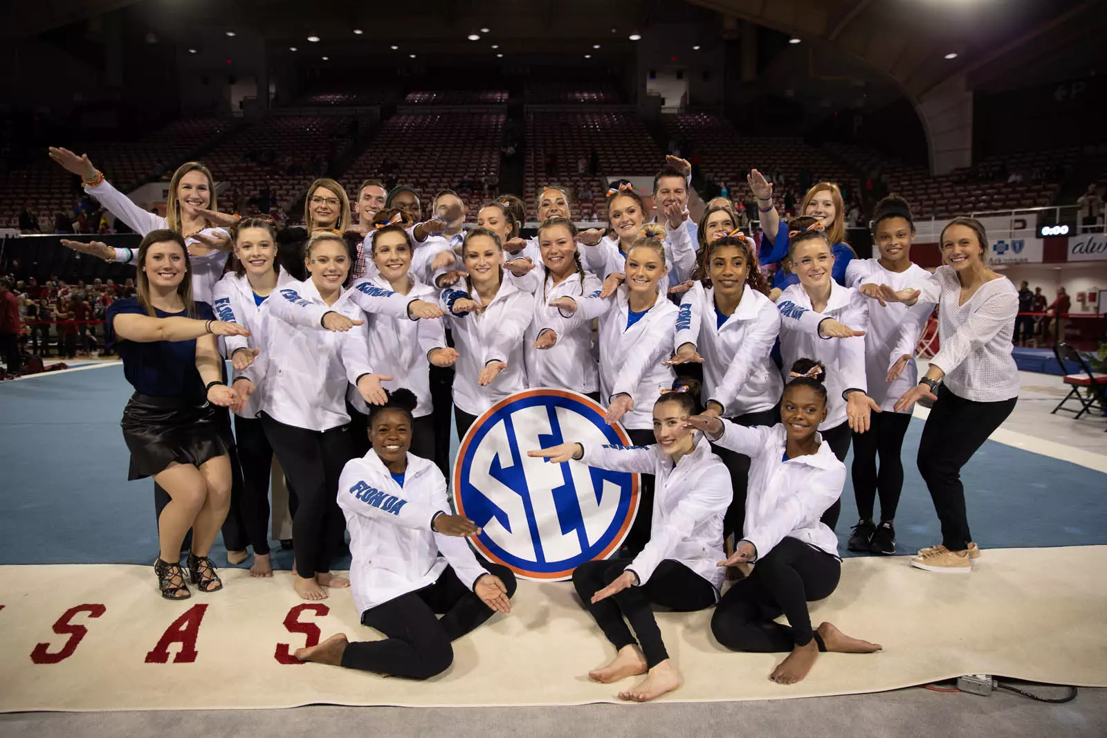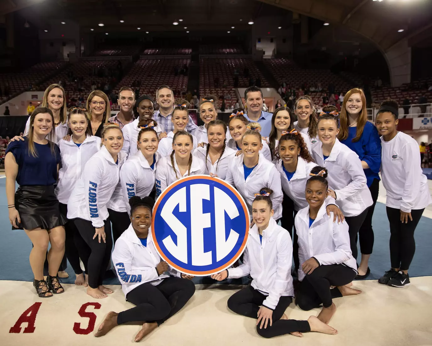- Florida claims its 11th SEC title (1982, '83, '84, '85, '89, '07, '10, '12, '13, 16, '19). This is the third year for the awarding of a regular-season SEC gymnastics title. From 1981-2016, the winner at the SEC Championships was considered the league champion.