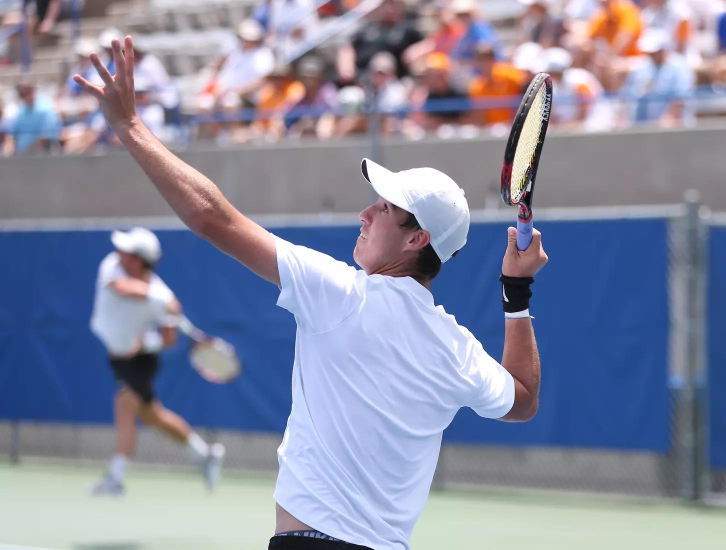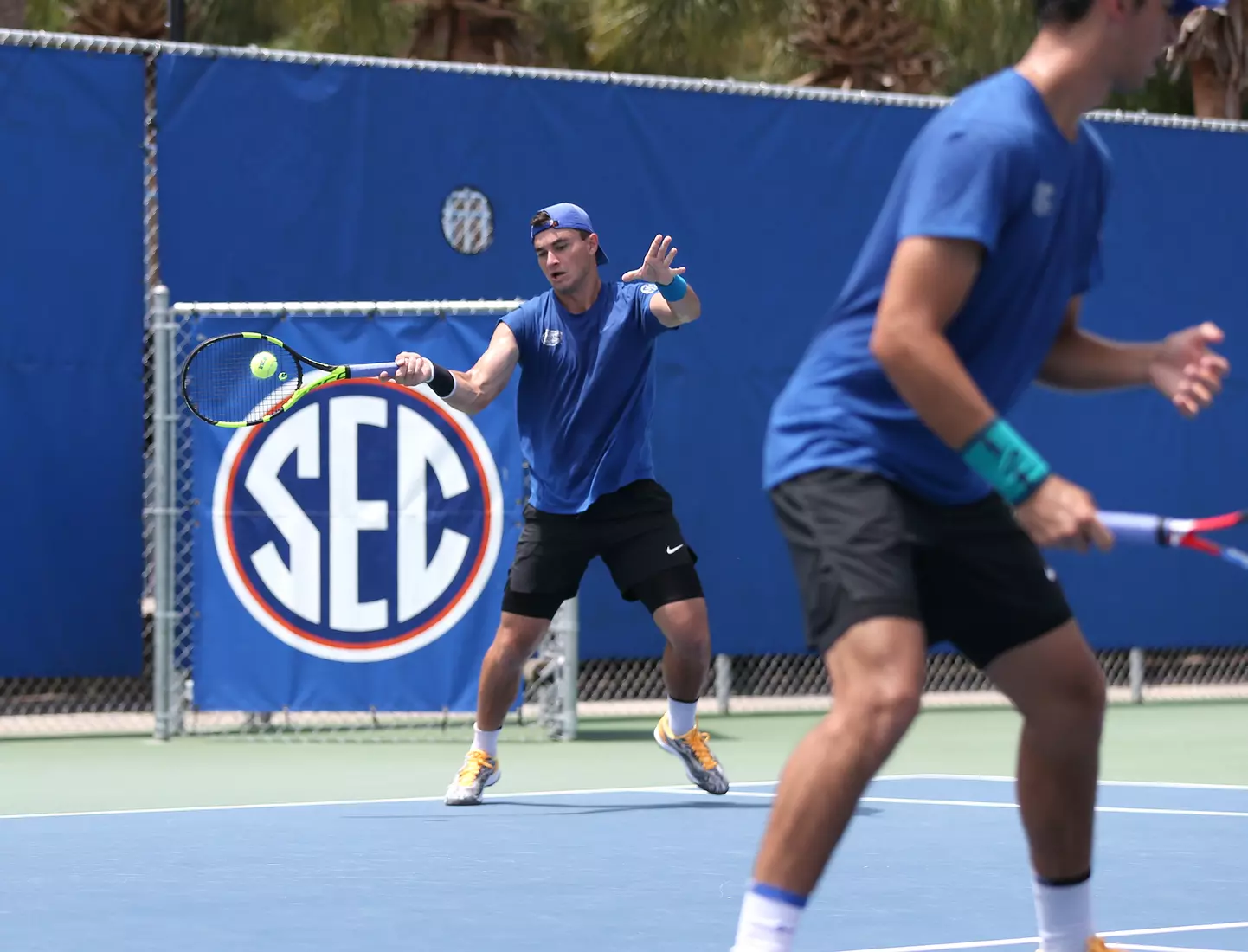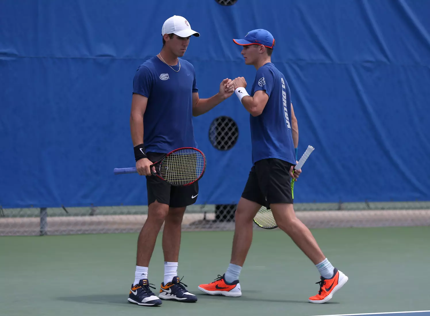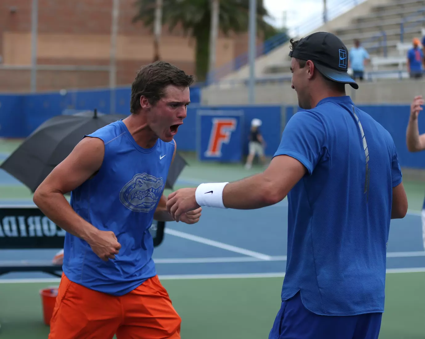 From the beginning of the match, emotions were high in the crowd and on the court. In front of the packed stands at the Alfred A. Ring Tennis complex, Vale and partner Andy Andrade did what they have lately, and that's take the doubles match on Court 3. After the Volunteers took Court 2 over Alfredo Perez and Sam Riffice, it was up to Court 1 to decide the point. Down a break, McClain Kessler and Johannes Ingildsen broke and took the lead and the match from the No. 6 ranked doubles duo and gave the Gators an early 1-0 advantage heading into singles.