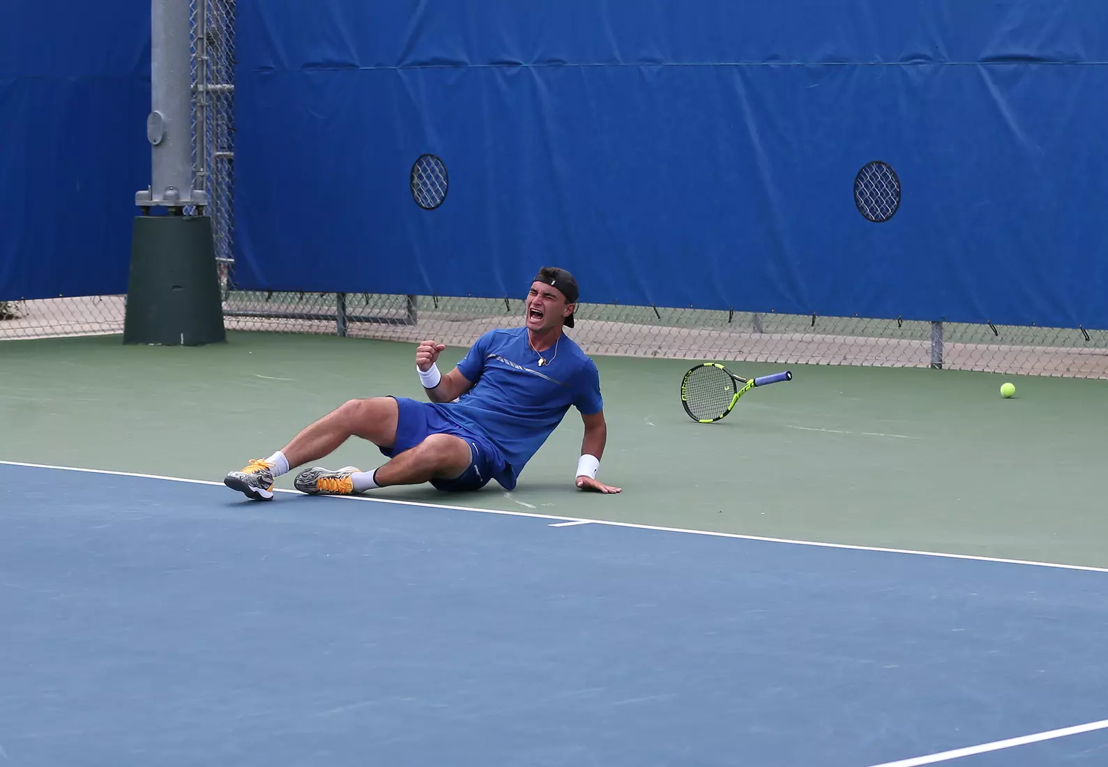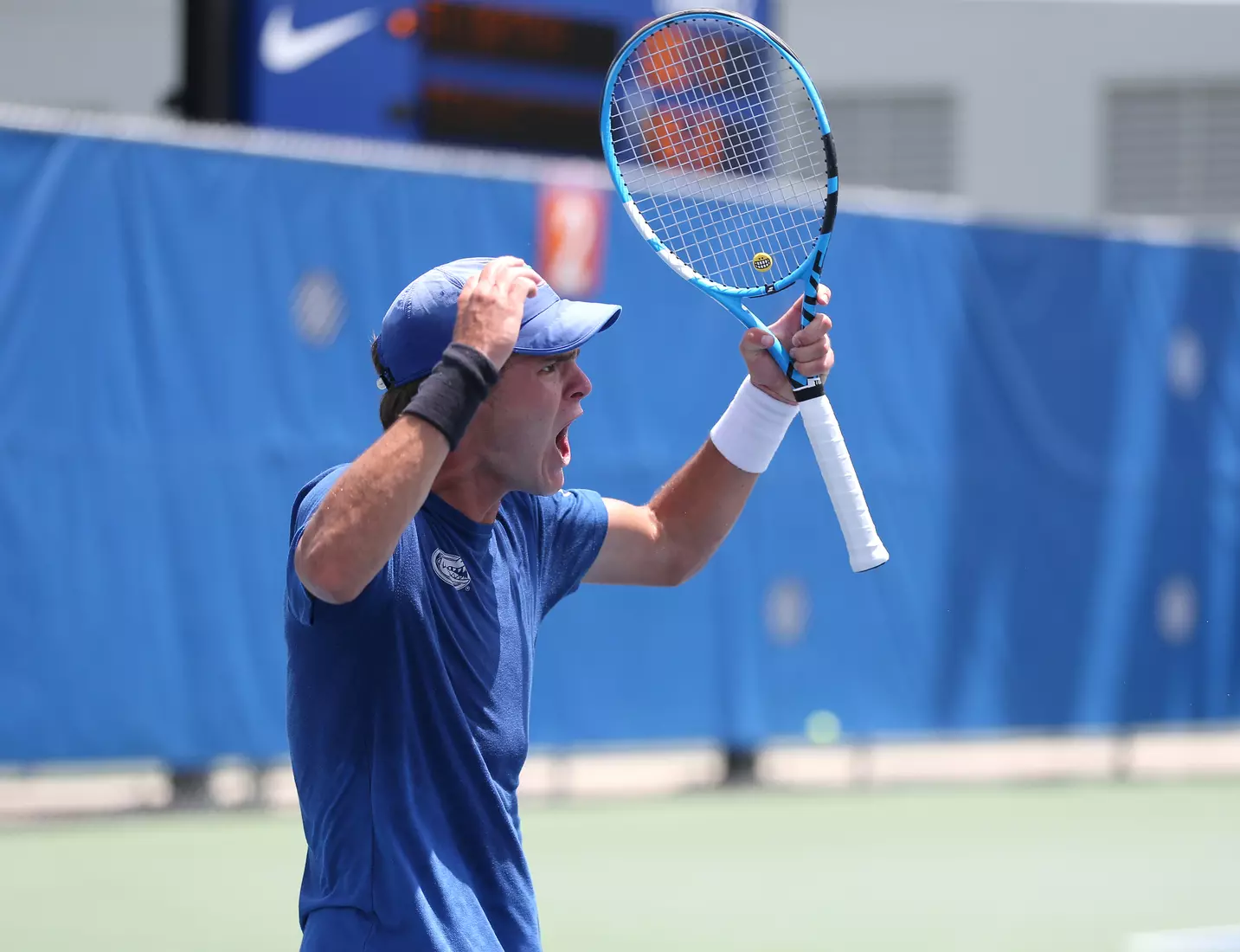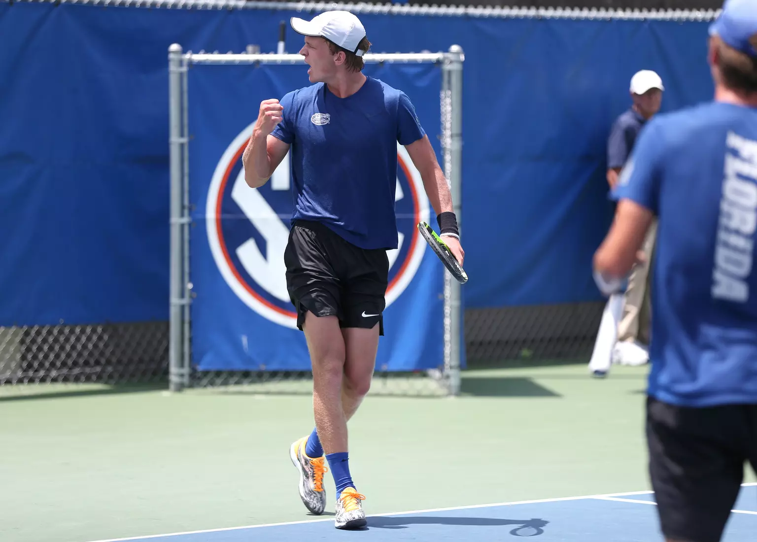 The fate of the match seemed to be in the hands of Duarte Vale, who had dropped the first set, but forced a third. After going down 4-3, having match point at 5-4, dropping two games and going down again, 6-5, tied the match and sent it to tiebreak. In tiebreak, Vale jumped out to a 4-2 lead in the tiebreak, but Preston Touliatos rallied and Tennessee tied it once again at 6-all. The two held serve until Vale went up 9-8. Touliatos' serve return went just long, Vale fell to the court and the dog pile ensued.
