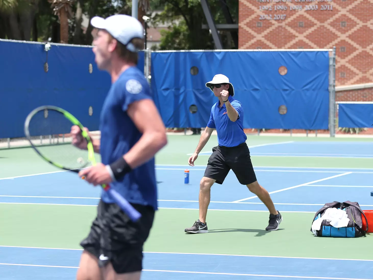 After going up 3-1, Florida got the crowd's heart racing as the final three matches still in play were in a third set. Oliver Crawford went down with an injury and had to take a medical point, but continued to battle Timo Stodder on Court 1. Then on Court 6, Lukas Greif also went down and also had to take a medical point and tried to play through the pain, but his loss cut the Gators' lead to 1.