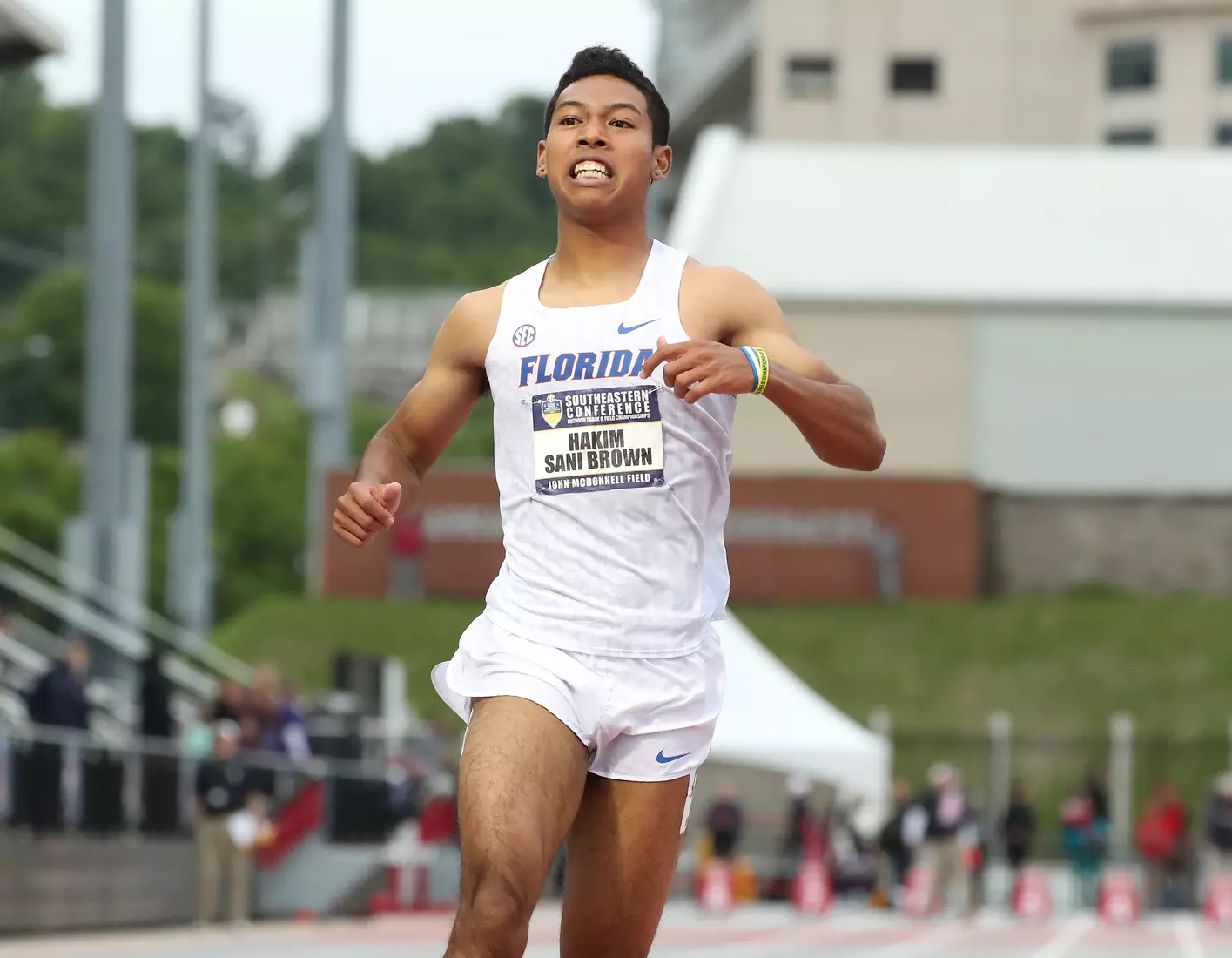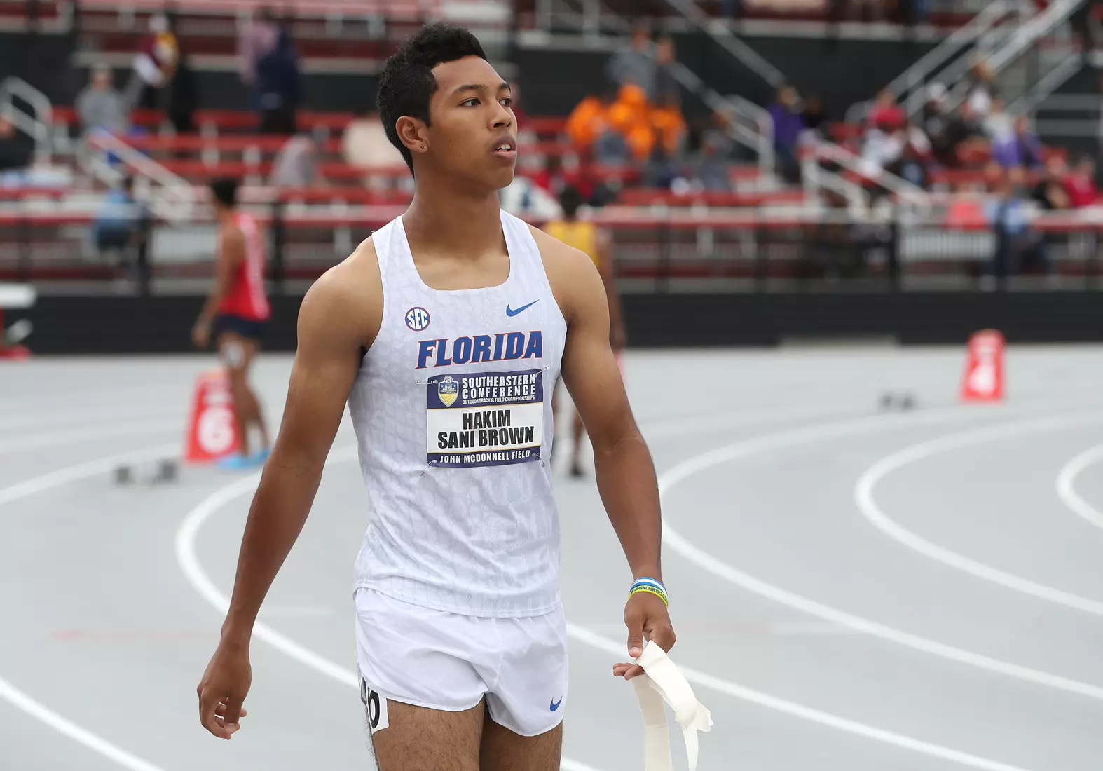 Sophomore Hakim Sani Brown gave the Gators their second title of the weekend on the men's side, as he and teammate Raymond Ekevwo combined for a 1-2 finish in a stellar 100-meters final. Sani Brown clocked a wind-legal 9.99 seconds, tying Bernard Williams' school record from the 2000 NCAA Outdoor Championships. It was also the second-fastest time in Japanese history, as well as the second-fastest time by a collegian this year.