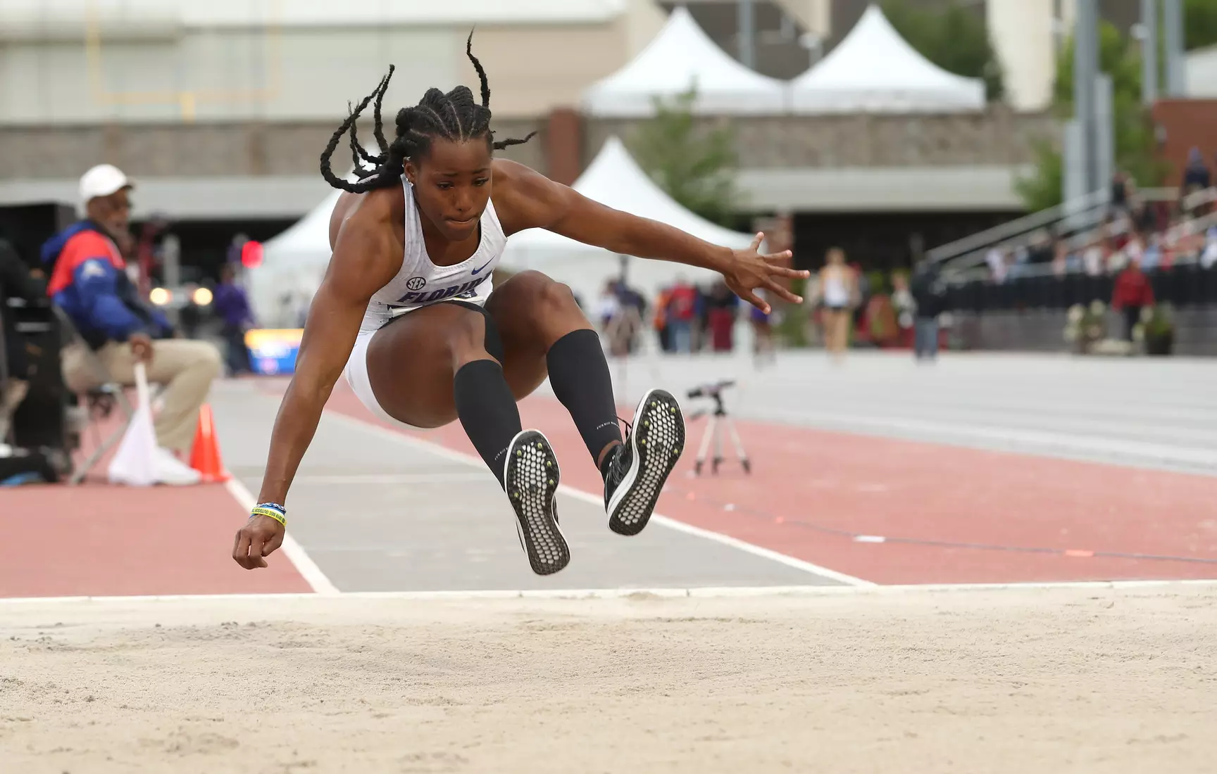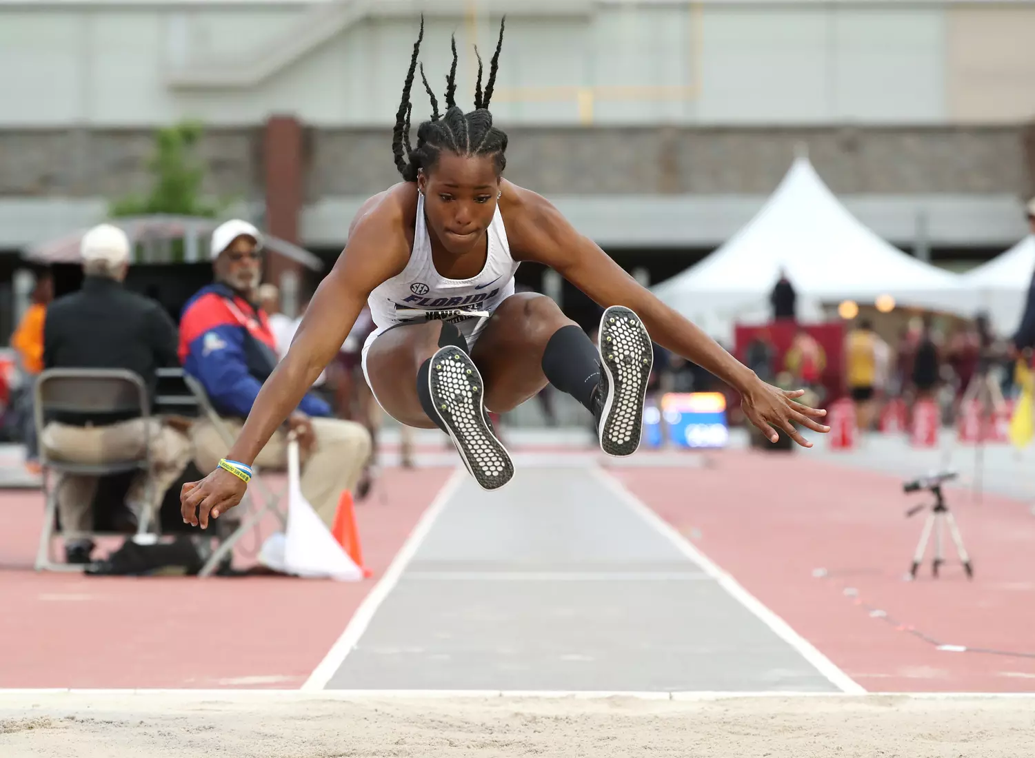 David completed the indoor and outdoor horizontal jumps sweep with the third-farthest triple jump mark in collegiate history (14.35 meters / 47 feet, 1 inch). The Lamentin, Guadeloupe, native popped the huge jump on her sixth and final attempt. Only Georgia's Keturah Orji, who graduated last year, jumped farther as a collegian.