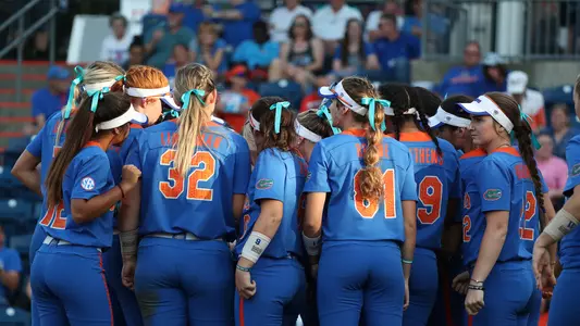 The Gators stayed disciplined at the plate in their half of the first by drawing three walks to quickly load the bases, which ended with Jaimie Hoover drawing a fourth walk to score Amanda Lorenz. |