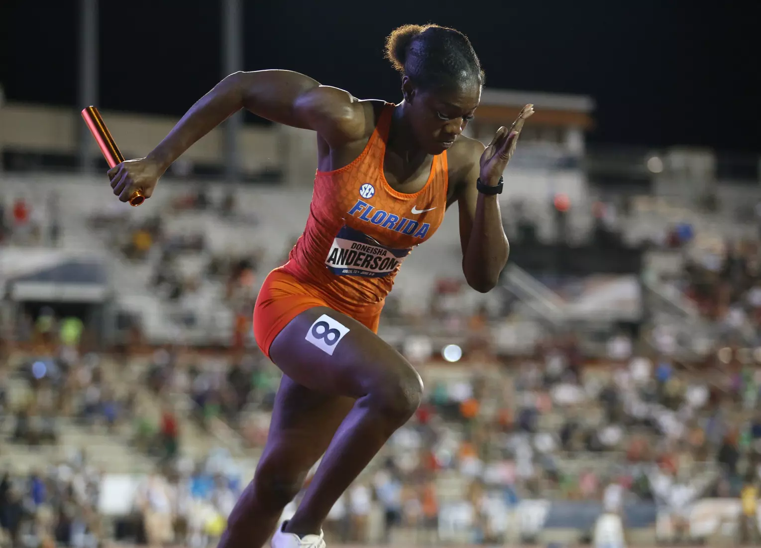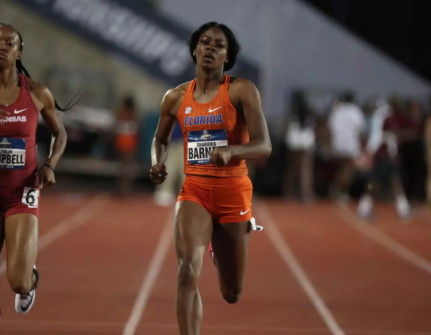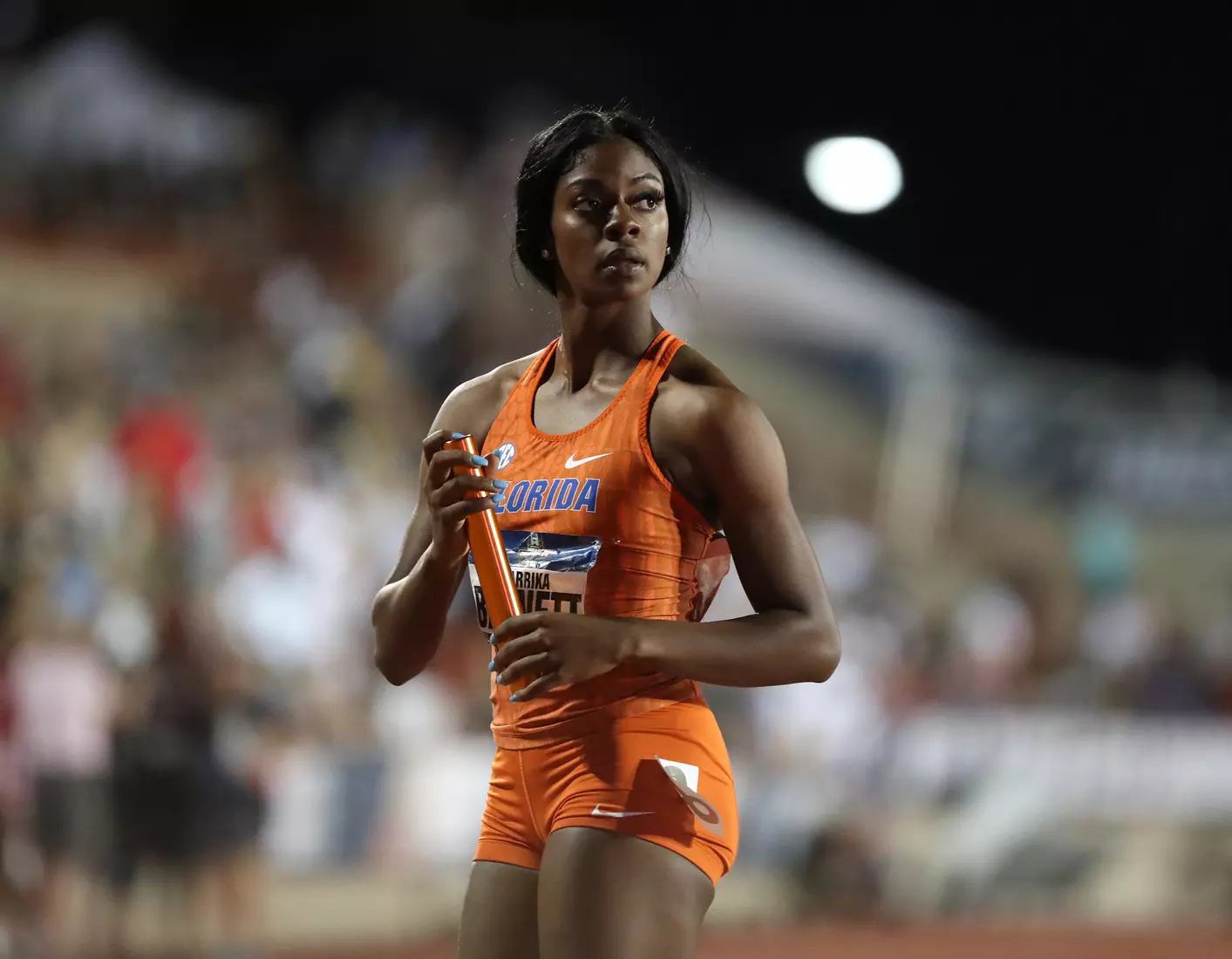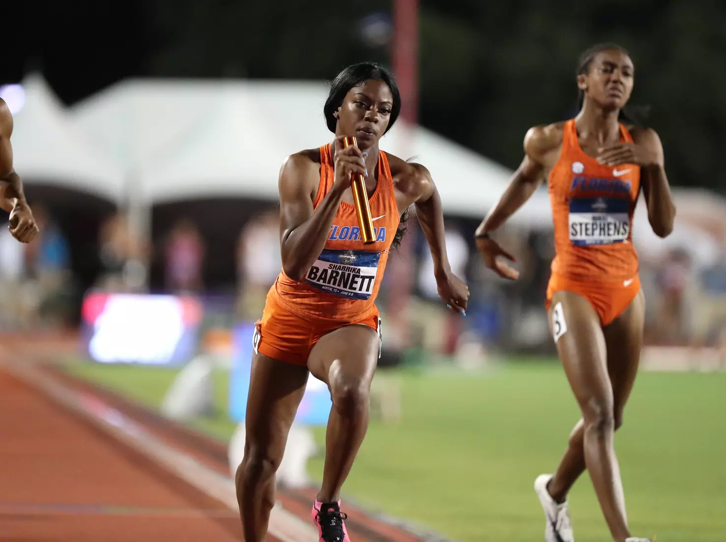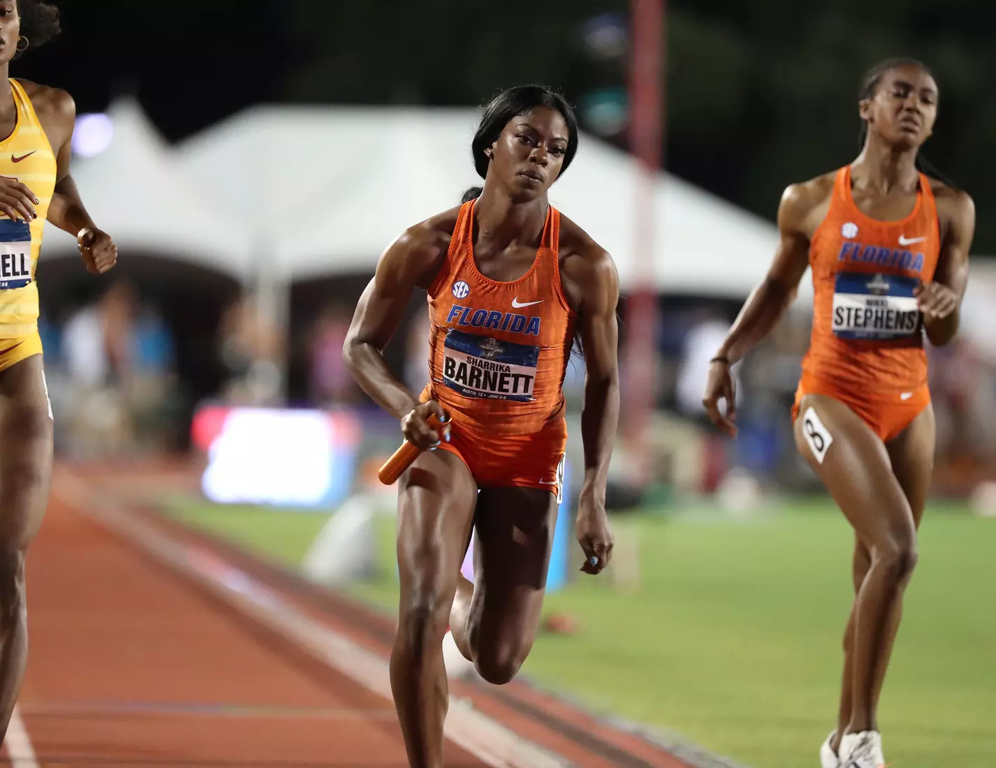 Barnett came back later in the evening and anchored Florida's 4x400 relay team to the final via a runner-up finish in their heat. Freshman Doneisha Anderson led off the relay, followed by sophomores Taylor Manson and Nikki Stephens.