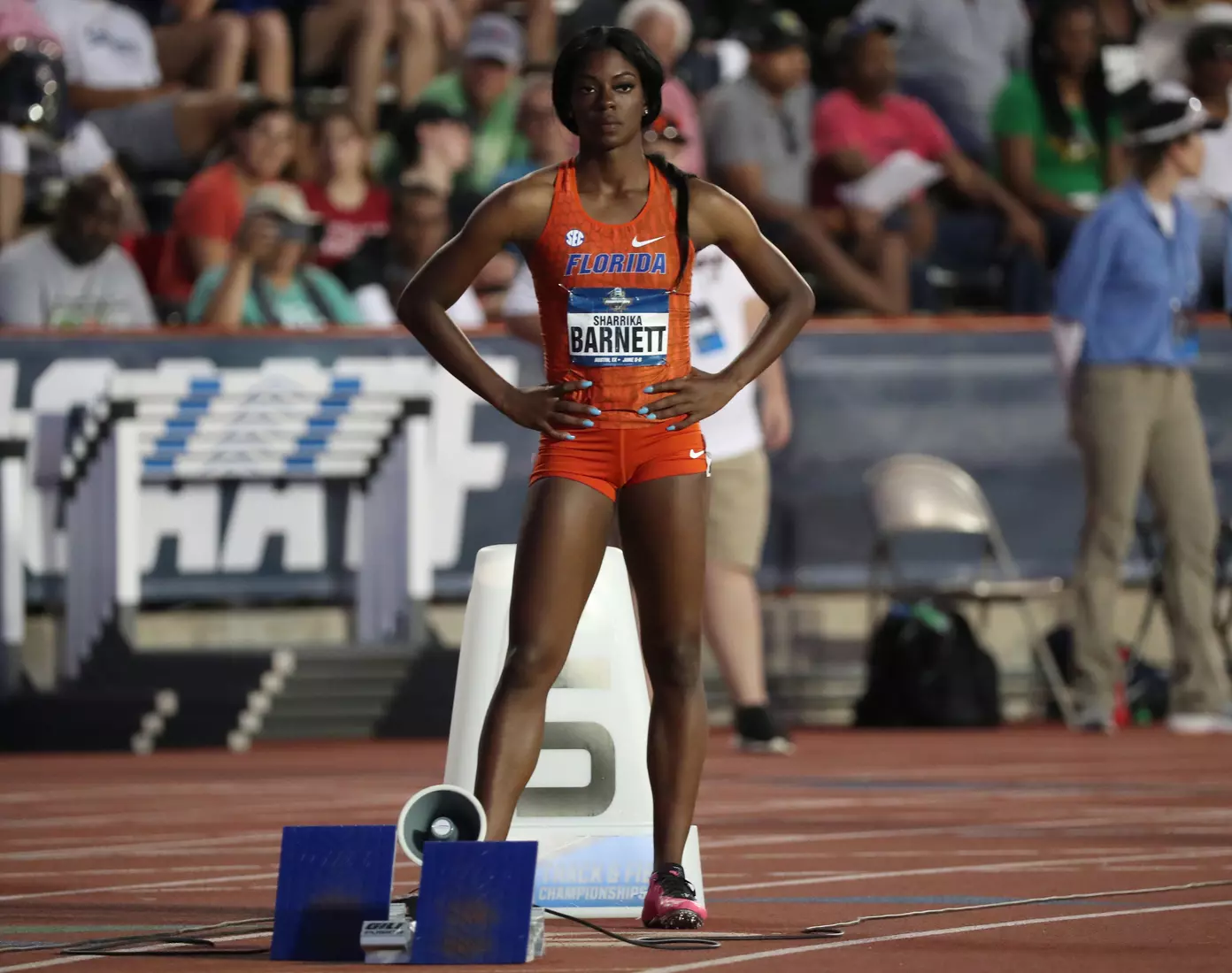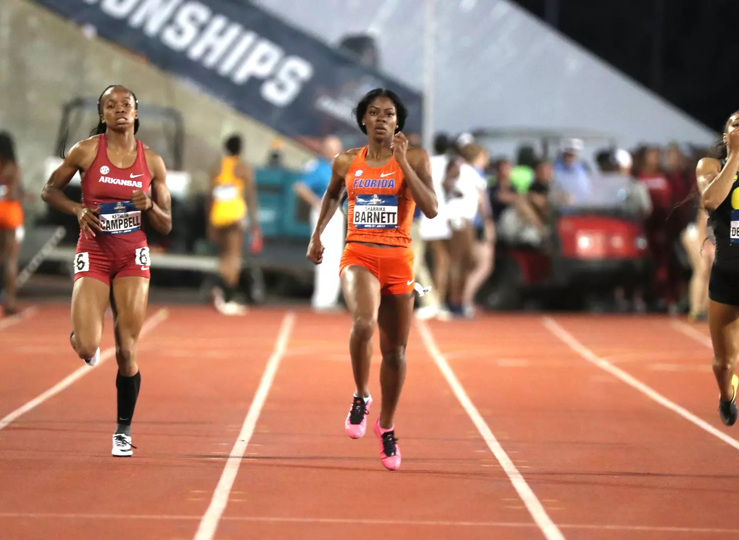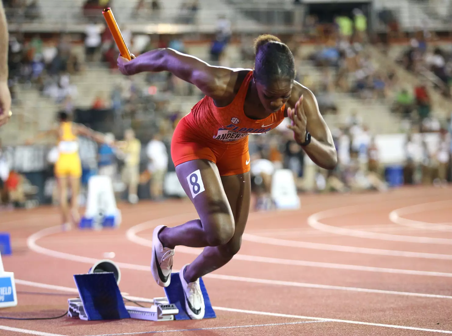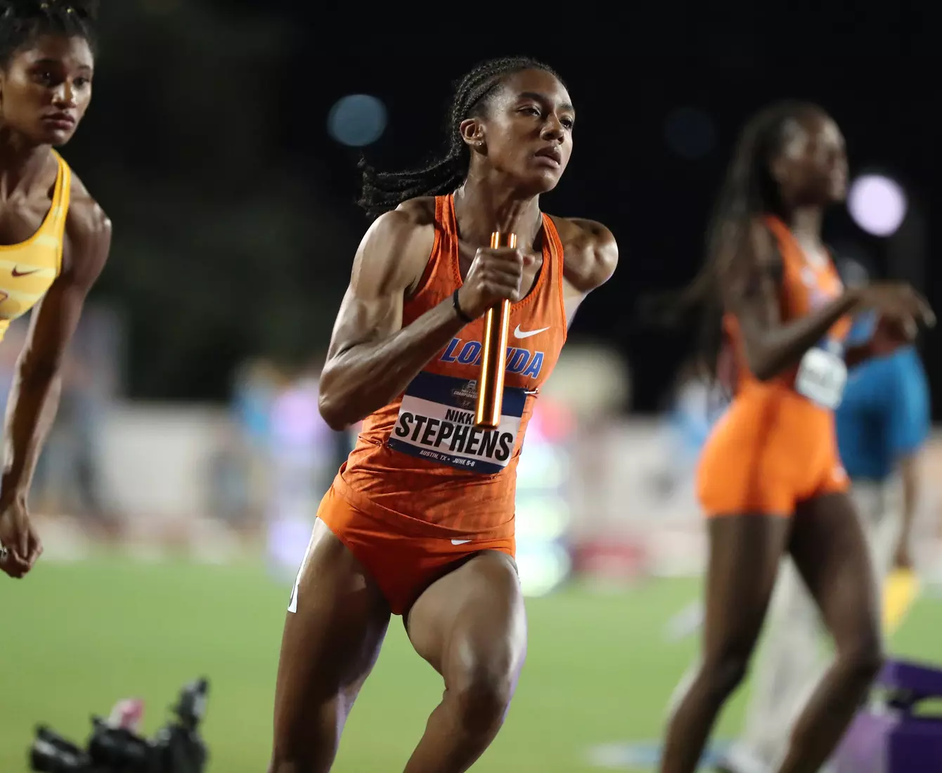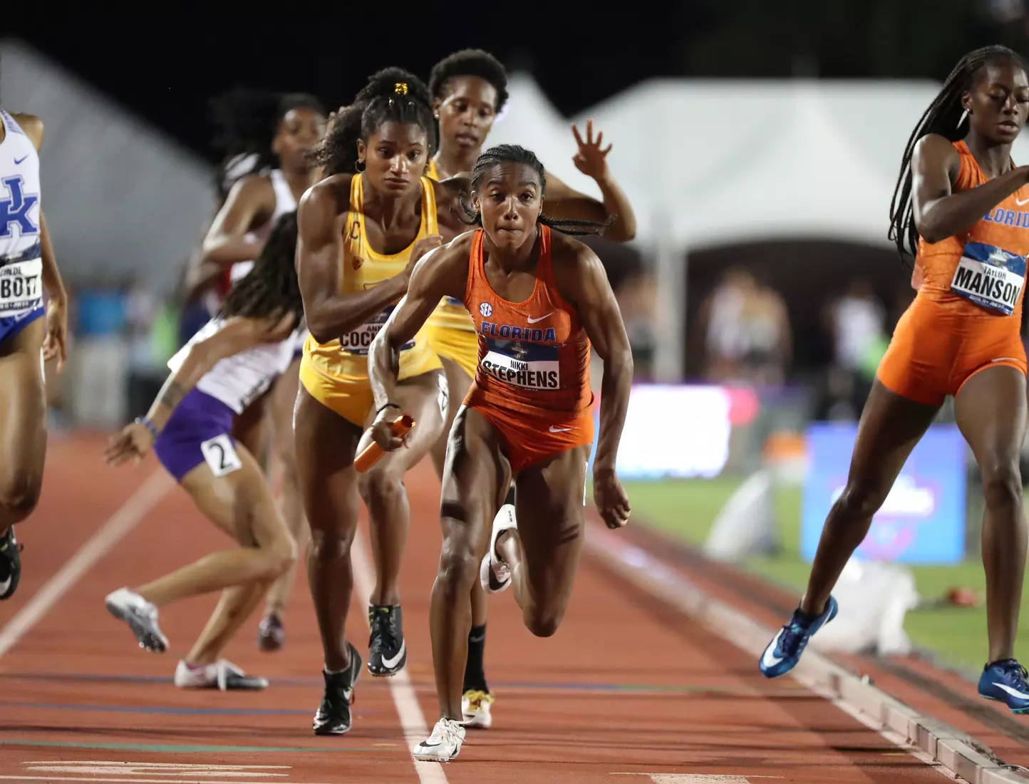 Barnett came back later in the evening and anchored Florida's 4x400 relay team to the final via a runner-up finish in their heat. Freshman Doneisha Anderson led off the relay, followed by sophomores Taylor Manson and Nikki Stephens.