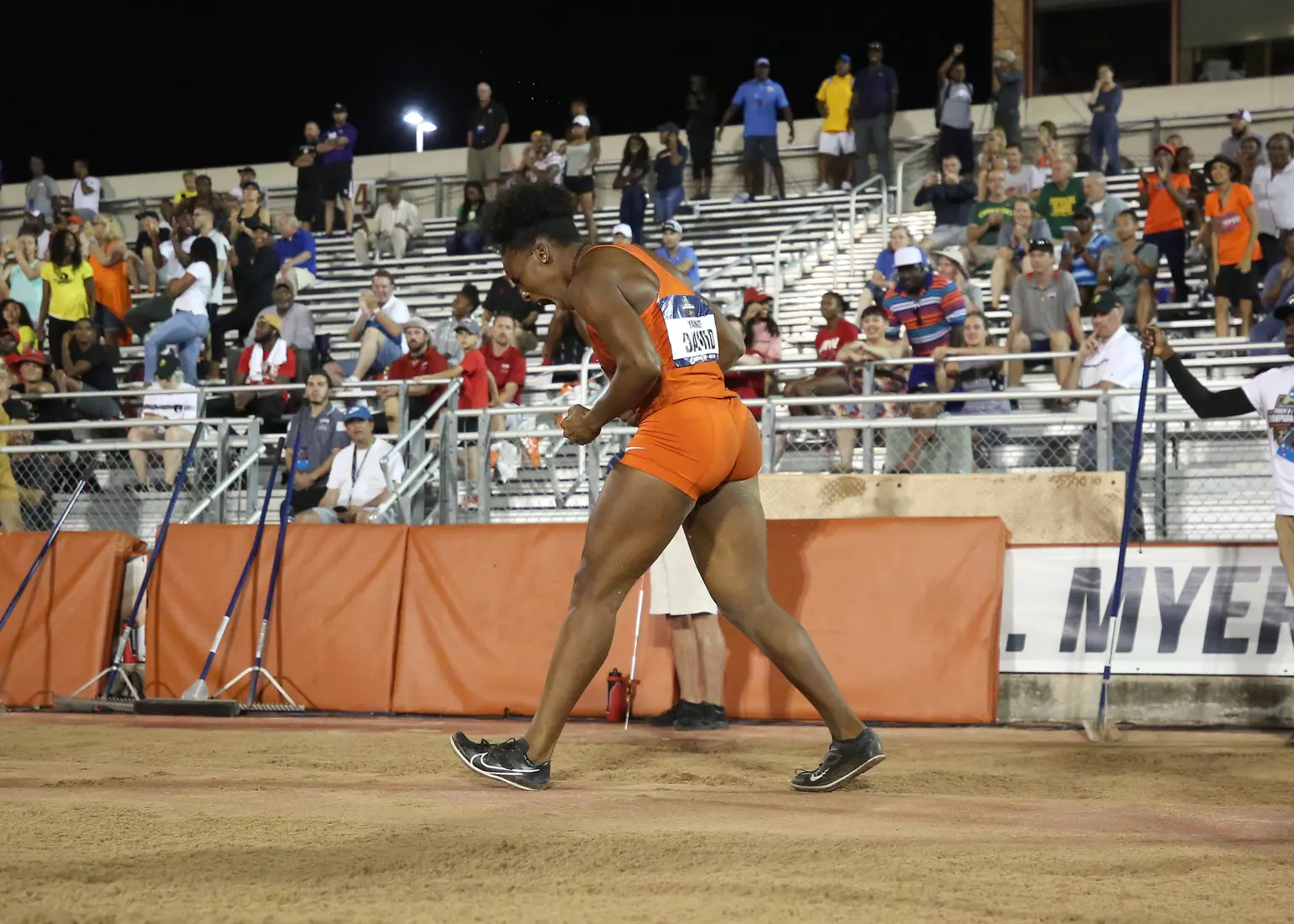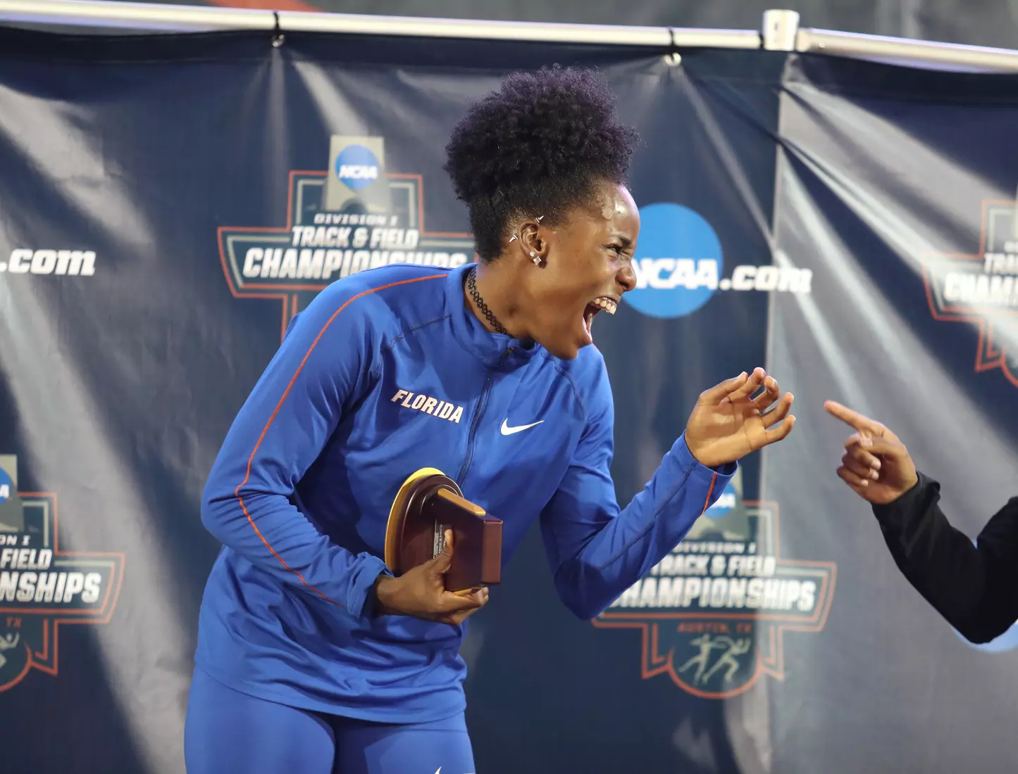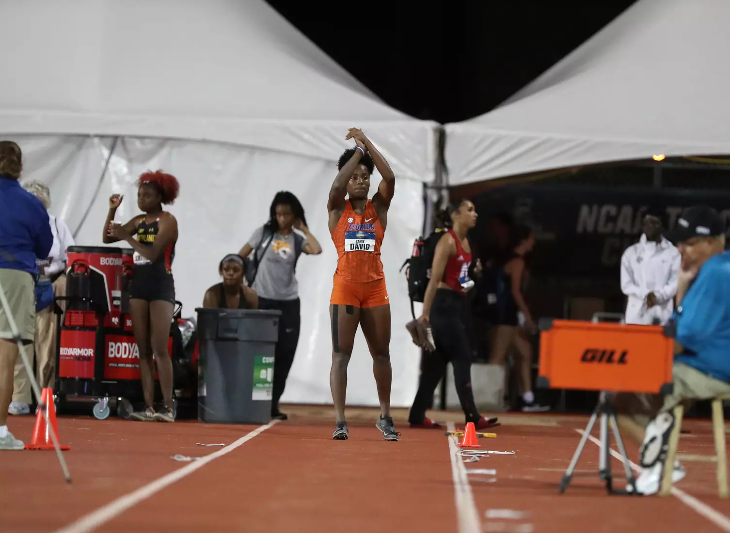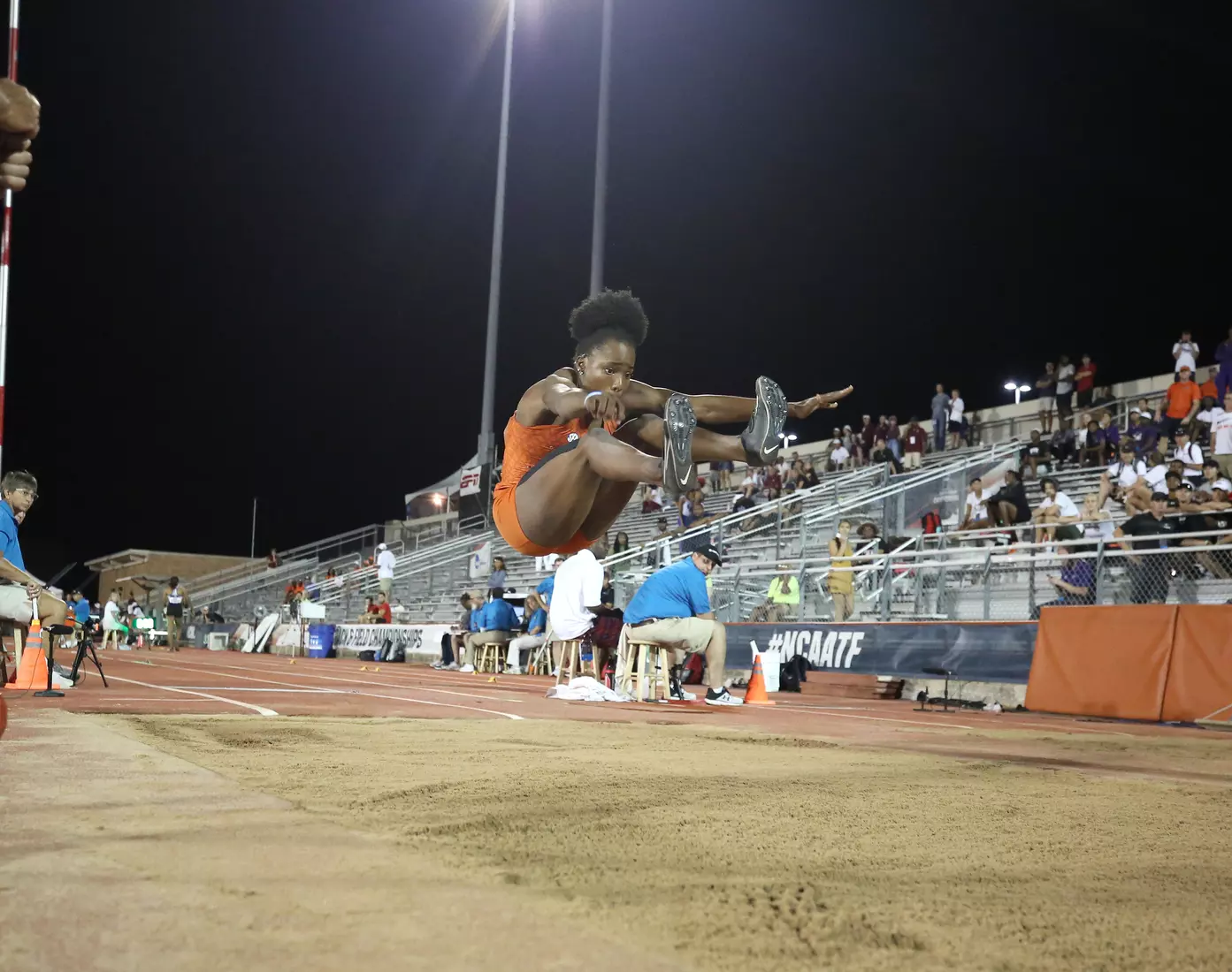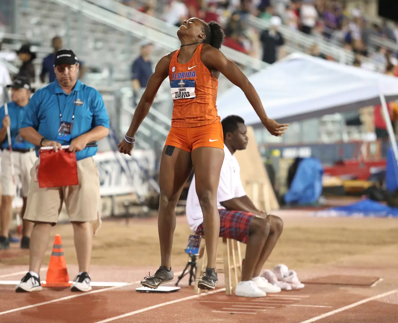 And David needed every bit of that massive jump to take the title. The Lamentin, Guadeloupe native took the lead with a 6.70-meter jump on her second attempt, but indoor national champion Jasmyn Steels of Northwestern State passed her by a centimeter in the fourth round. David's winning jump came in the fifth round.