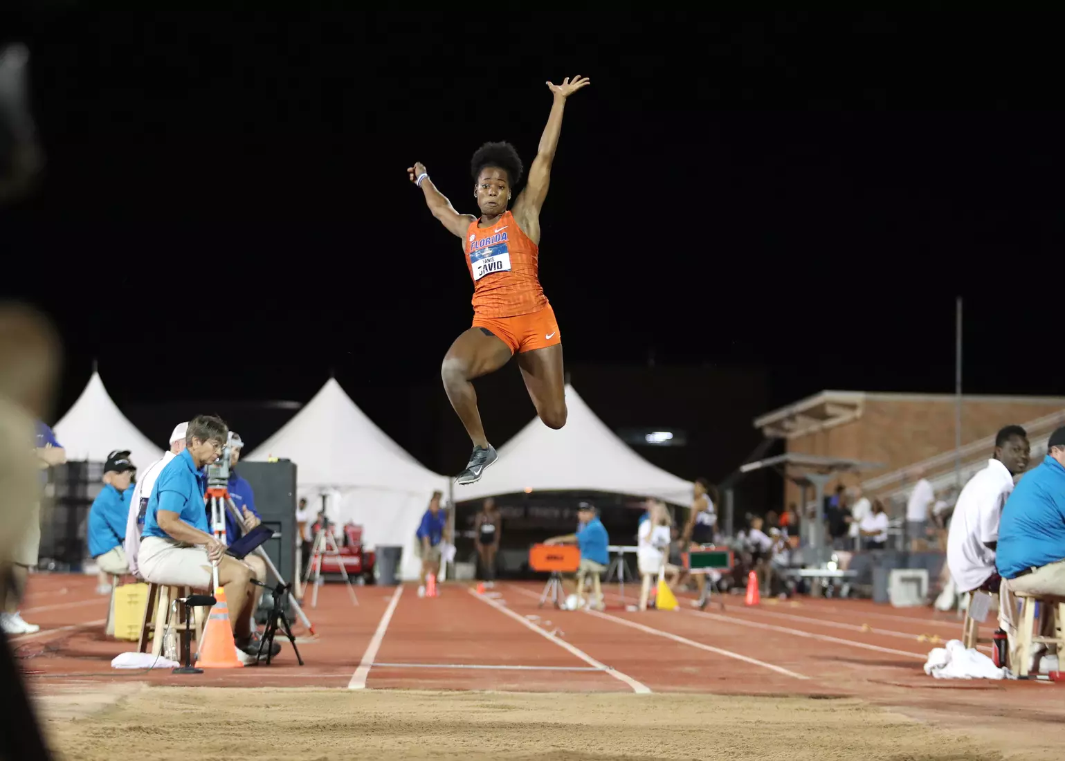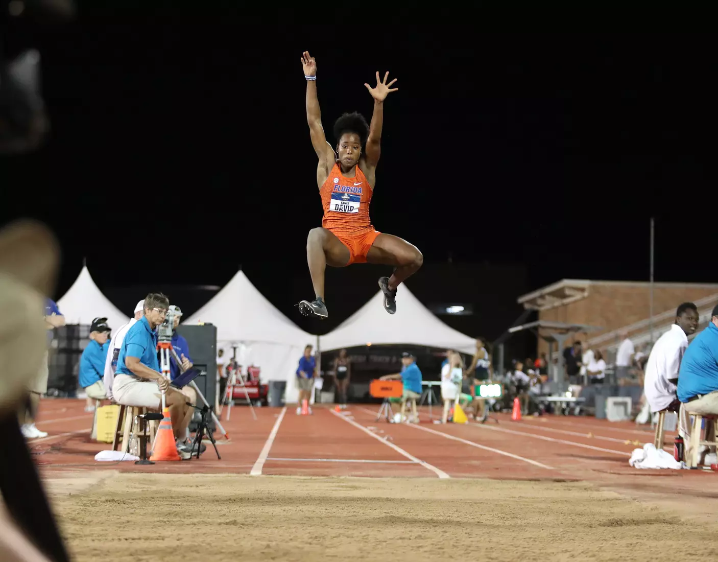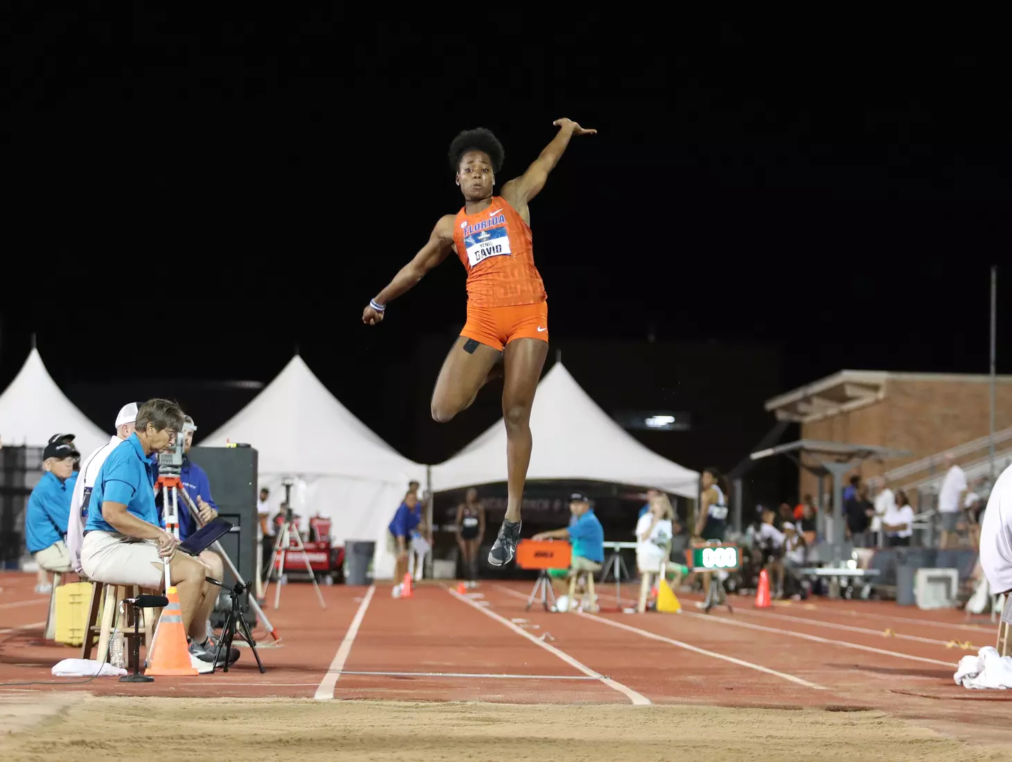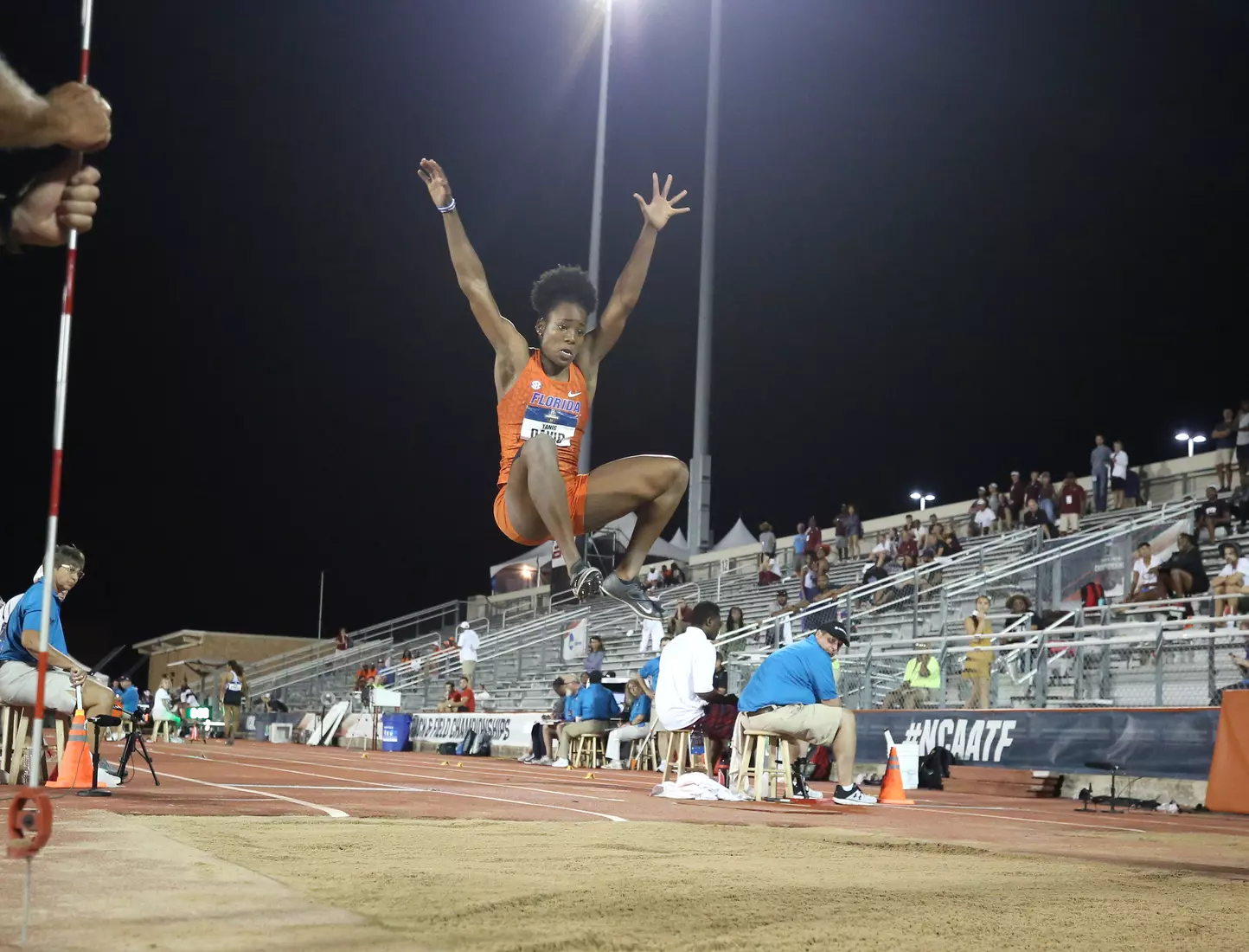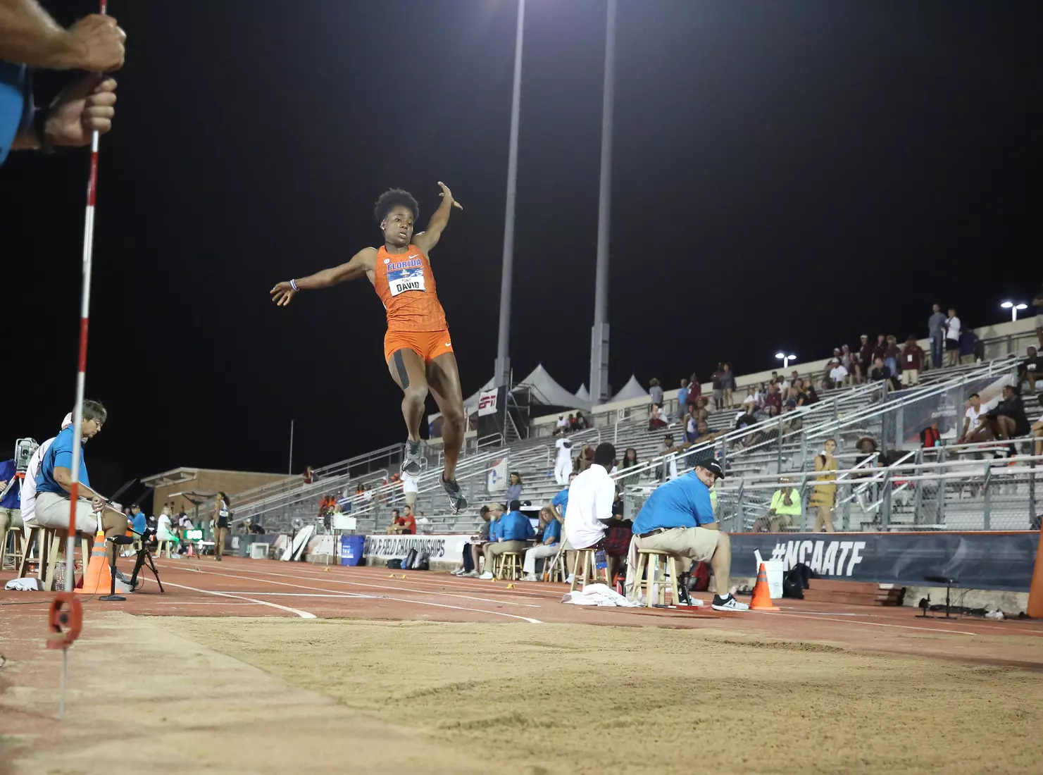 Only two jumps in NCAA Outdoors history remain farther than David's, and the women who hold them went on to win Olympic gold medals. LSU's Sheila Echols leapt 6.94 meters (22 feet, 9.25 inches) in 1987, and Ole Miss' Brittney Reese jumped 6.93 meters (22 feet, 9 inches) in 2008.