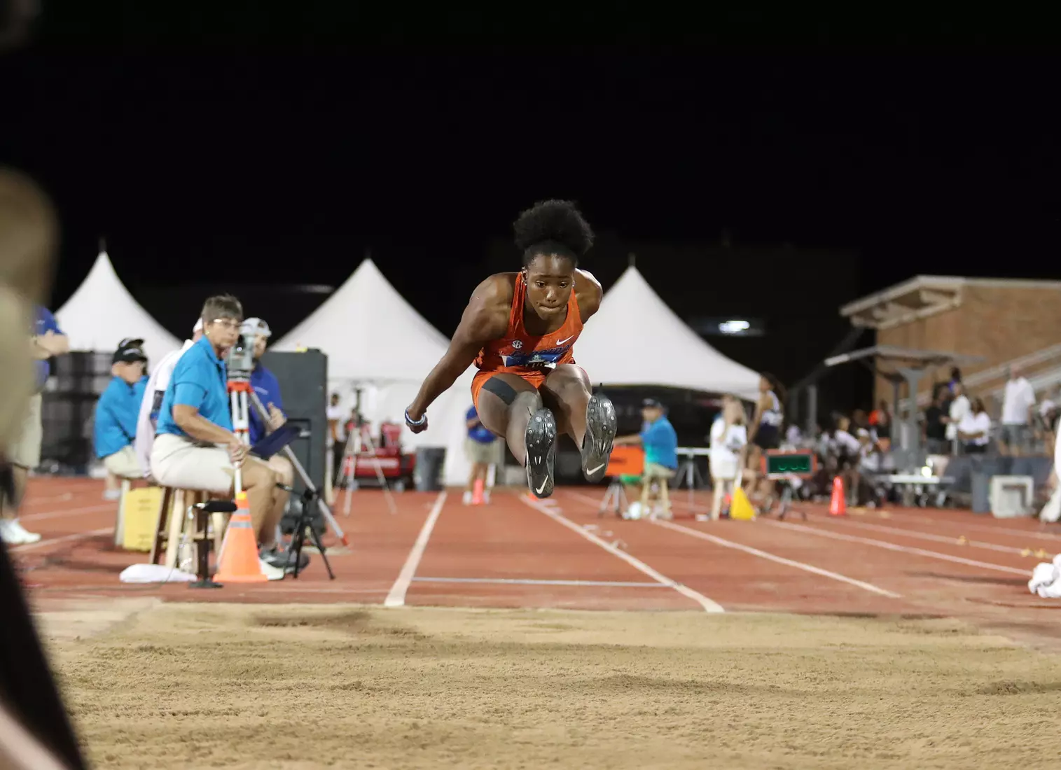 David had far and away the best series of her career, as she topped her personal record three times, with the final of those efforts reaching 6.84 meters (22 feet, 5.25 inches). The jump tied the No. 7 performer on the collegiate all-time top 10, broke Shara Proctor's 10-year-old school record by 13 centimeters (5 inches), and topped her own personal record from last year's SEC Outdoor Championships by 17 centimeters (6.5 inches).