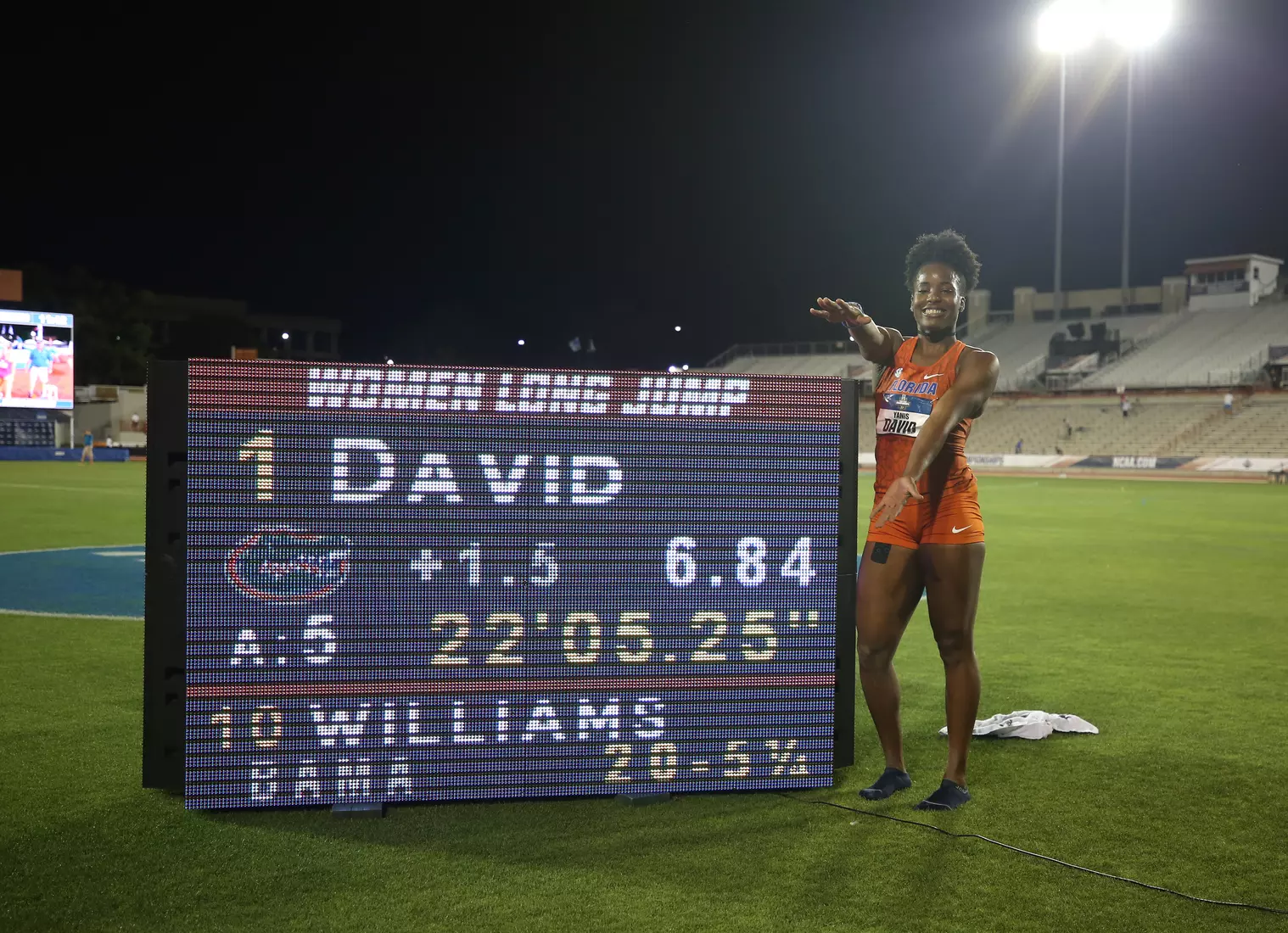 After jumping a Personal Best 2️⃣2️⃣↔️5️⃣¼ Florida's Yanis David is the #ncaaTF Long Jump Champion! pic.twitter.com/t8ZXCPwfyp