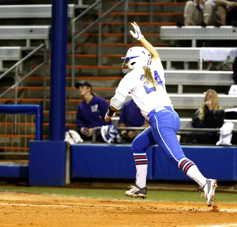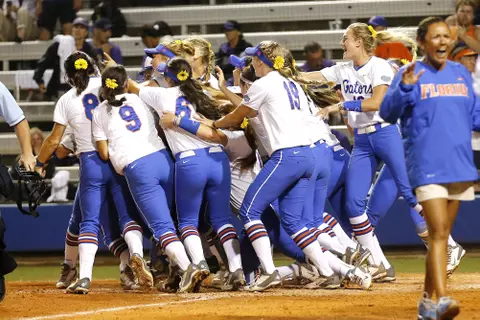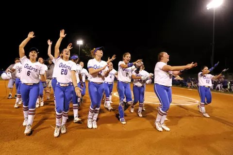 Freshman Nicole DeWitt punched the Gators ticket to the championship series in the 9th inning with a walk-off single to shallow left field that scored speedy sophomore Justine McLean from second. Haeger went the distance in the circle as she improved her record to 31-1 in the complete-game effort.