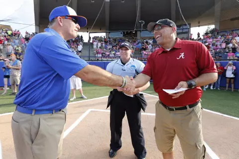 Florida did something Monday night they had never done: win a game in the WCWS Championship Series. If they can win one more, they will claim their first national championship. The Gators (54-12) got it done in their 5-0 Game 1 victory over SEC-rival Alabama the way they have all postseason: solid defense, timely hitting and the right arm of starter Hannah Rogers.