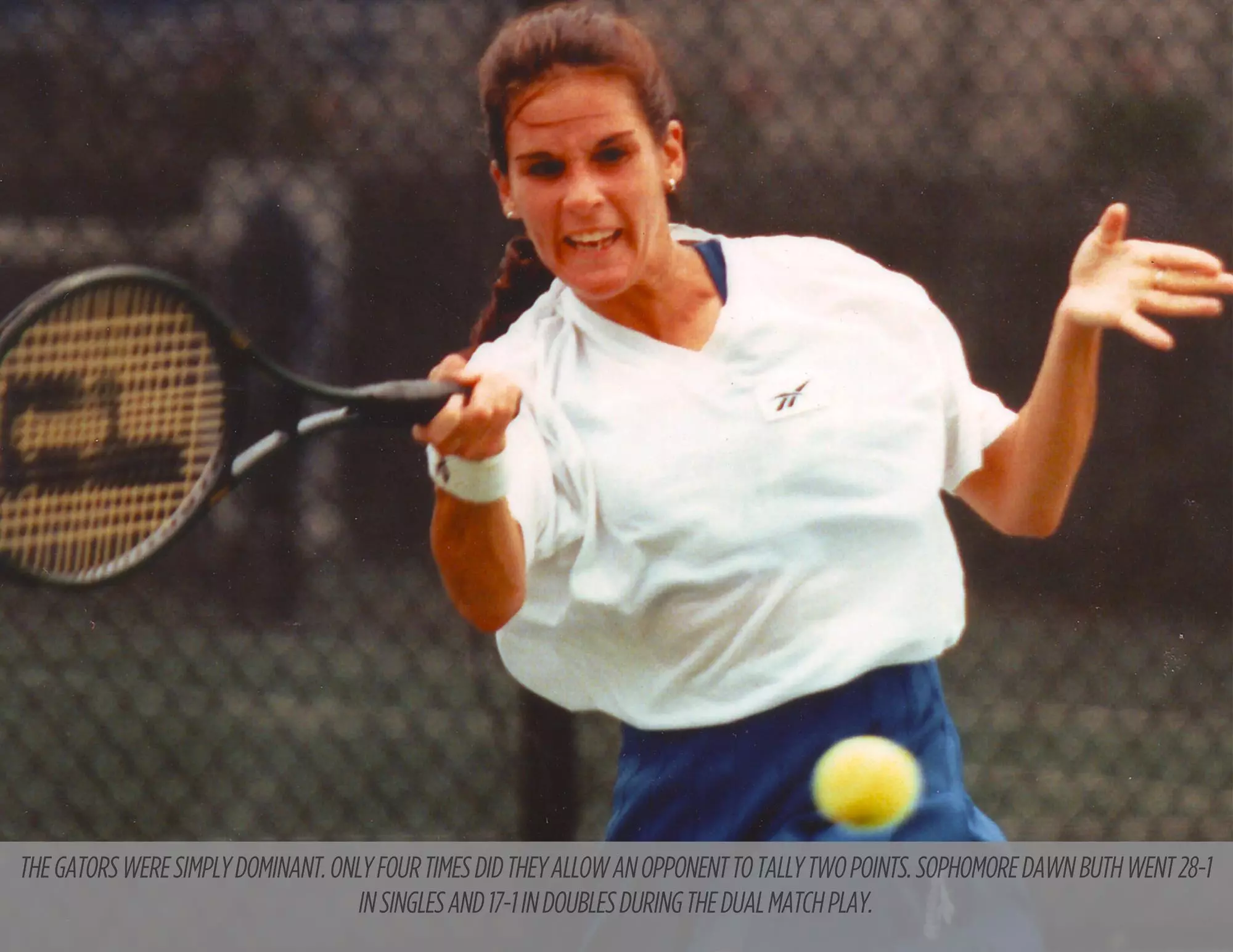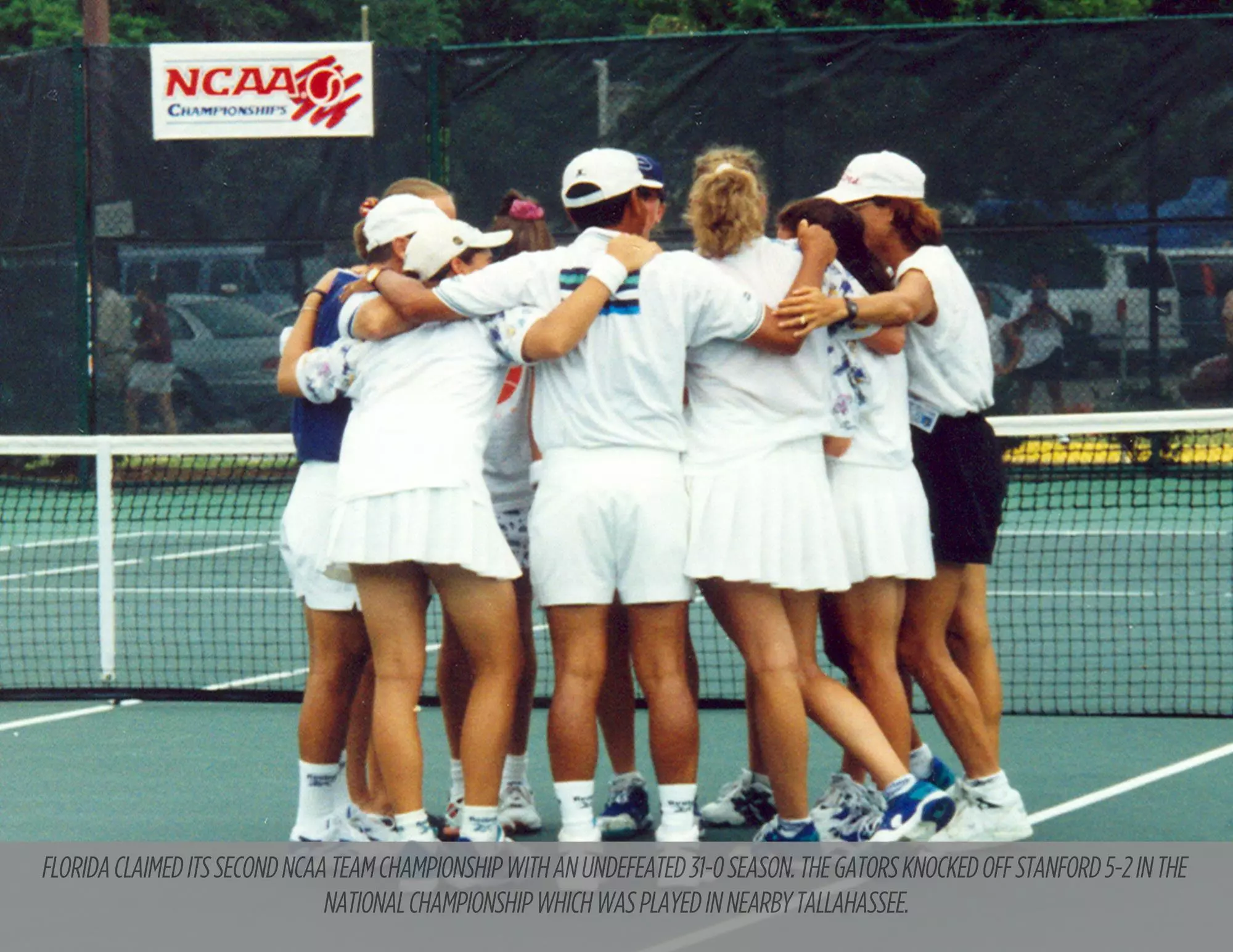 The 1992 Gators, the first of Brandi’s three title teams, were paced by a dynamic duo of freshman Lisa Raymond and senior Holly Lloyd.
