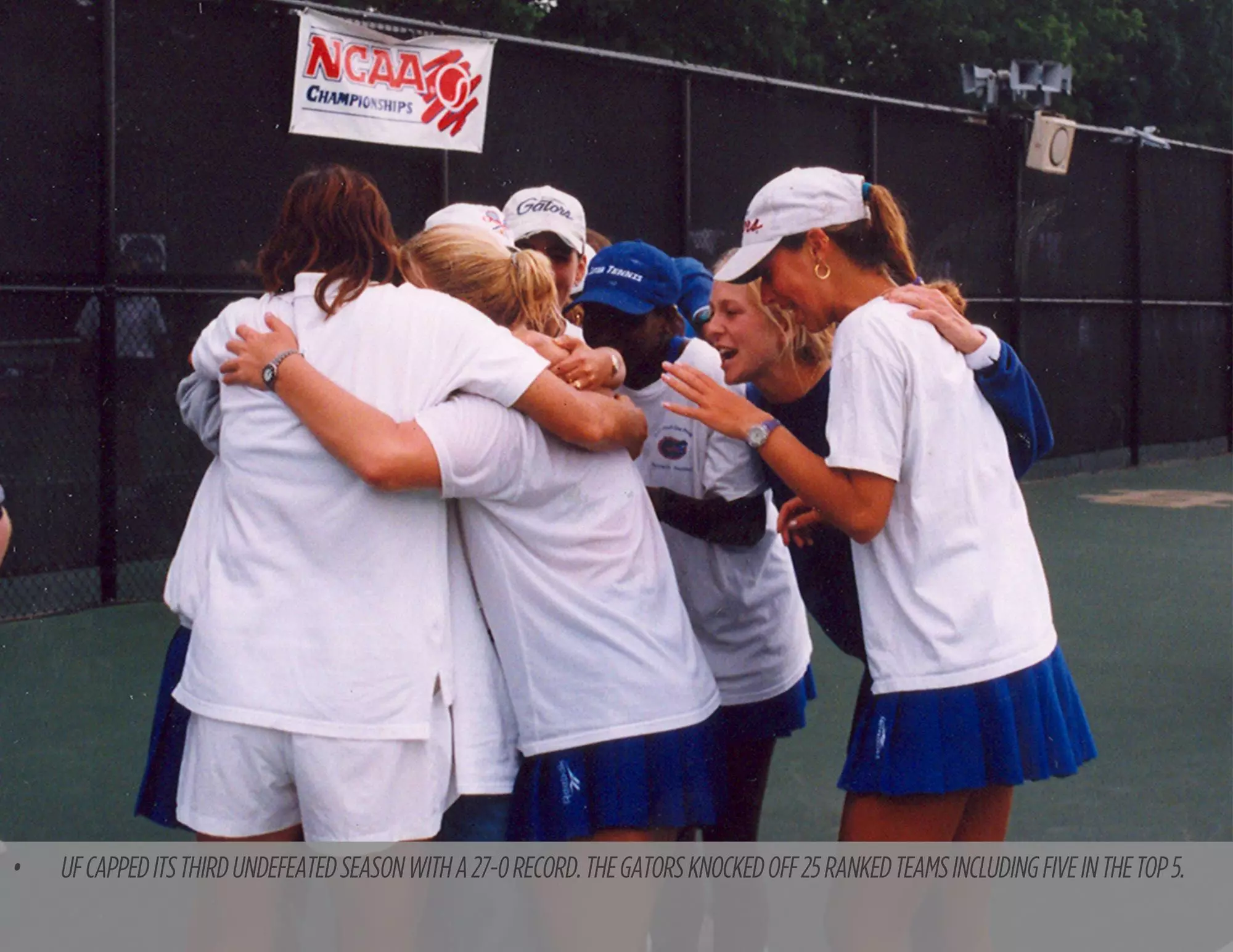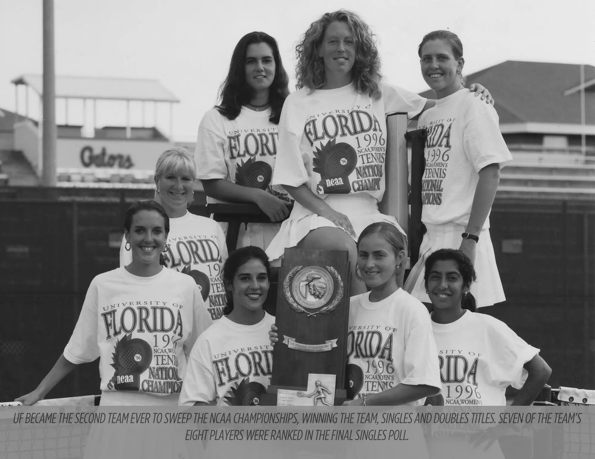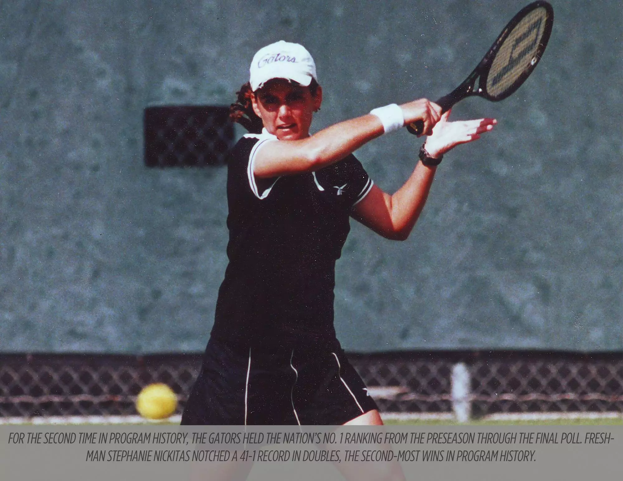 Seniors Jill Craybas, Lori Ann Freedman and Lisa Pugliese all went out on top as UF won its 14th SEC Championship. Six days following the team title, Craybas won the NCAA Singles title and the pair of Dawn Buth and Stephanie Nickitas won the NCAA Doubles crown. Florida became only the second team in history to sweep the three NCAA titles (team, singles & doubles) and sealed its place as one of the most dominant teams in collegiate history.