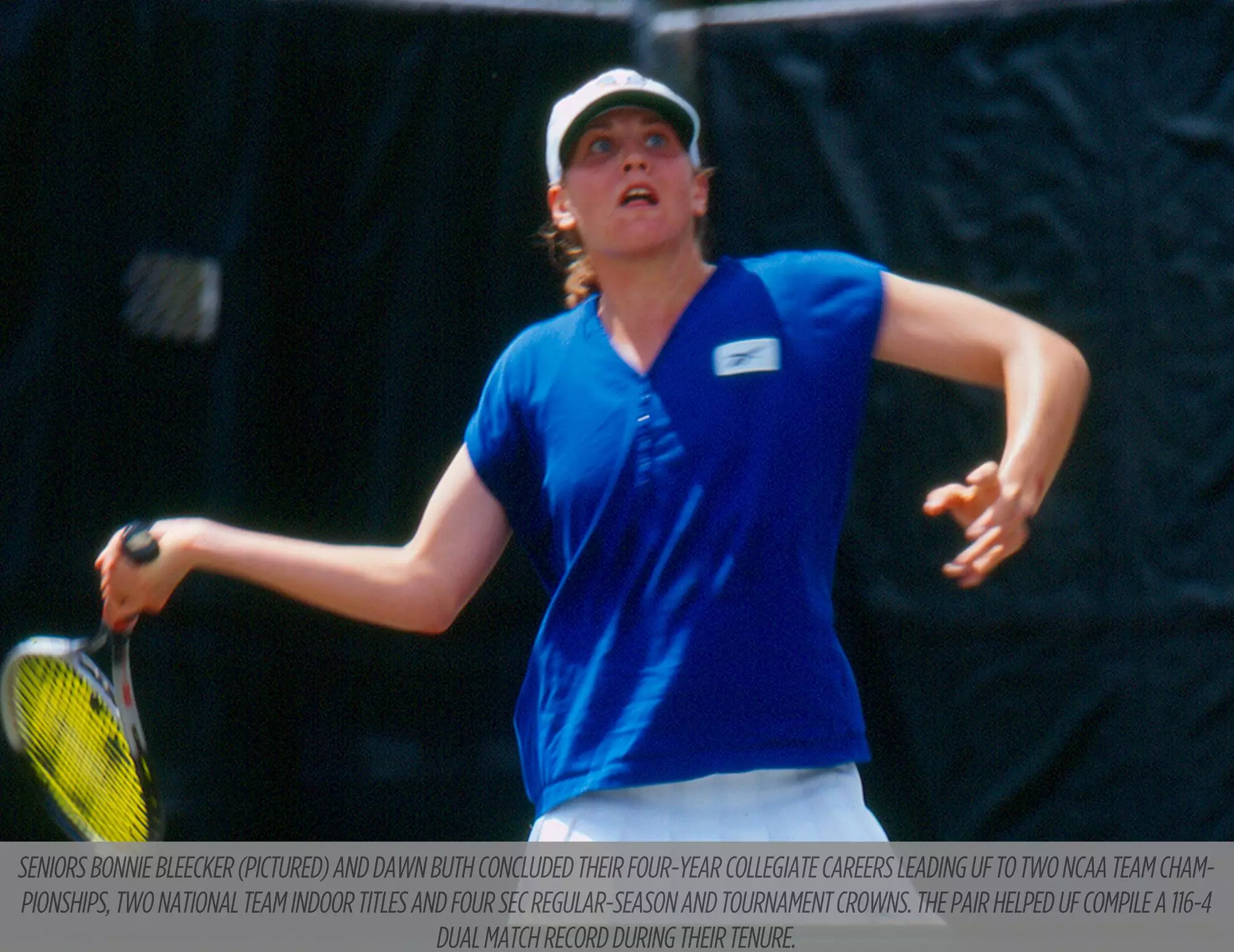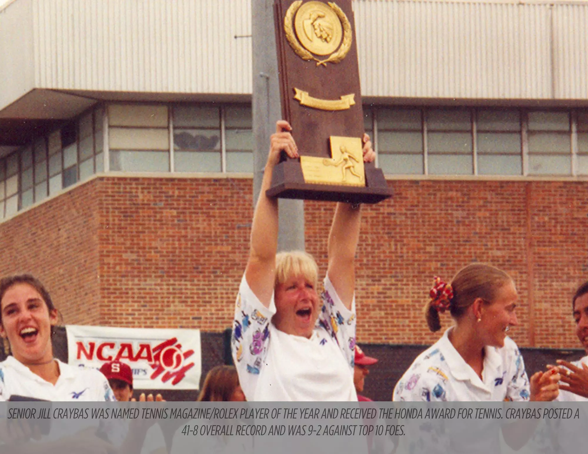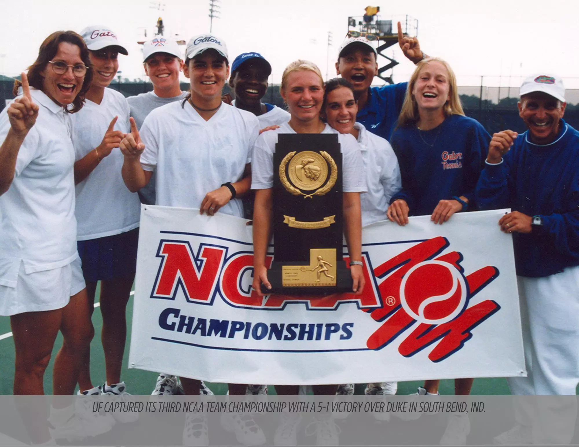 Seniors Jill Craybas, Lori Ann Freedman and Lisa Pugliese all went out on top as UF won its 14th SEC Championship. Six days following the team title, Craybas won the NCAA Singles title and the pair of Dawn Buth and Stephanie Nickitas won the NCAA Doubles crown. Florida became only the second team in history to sweep the three NCAA titles (team, singles & doubles) and sealed its place as one of the most dominant teams in collegiate history.