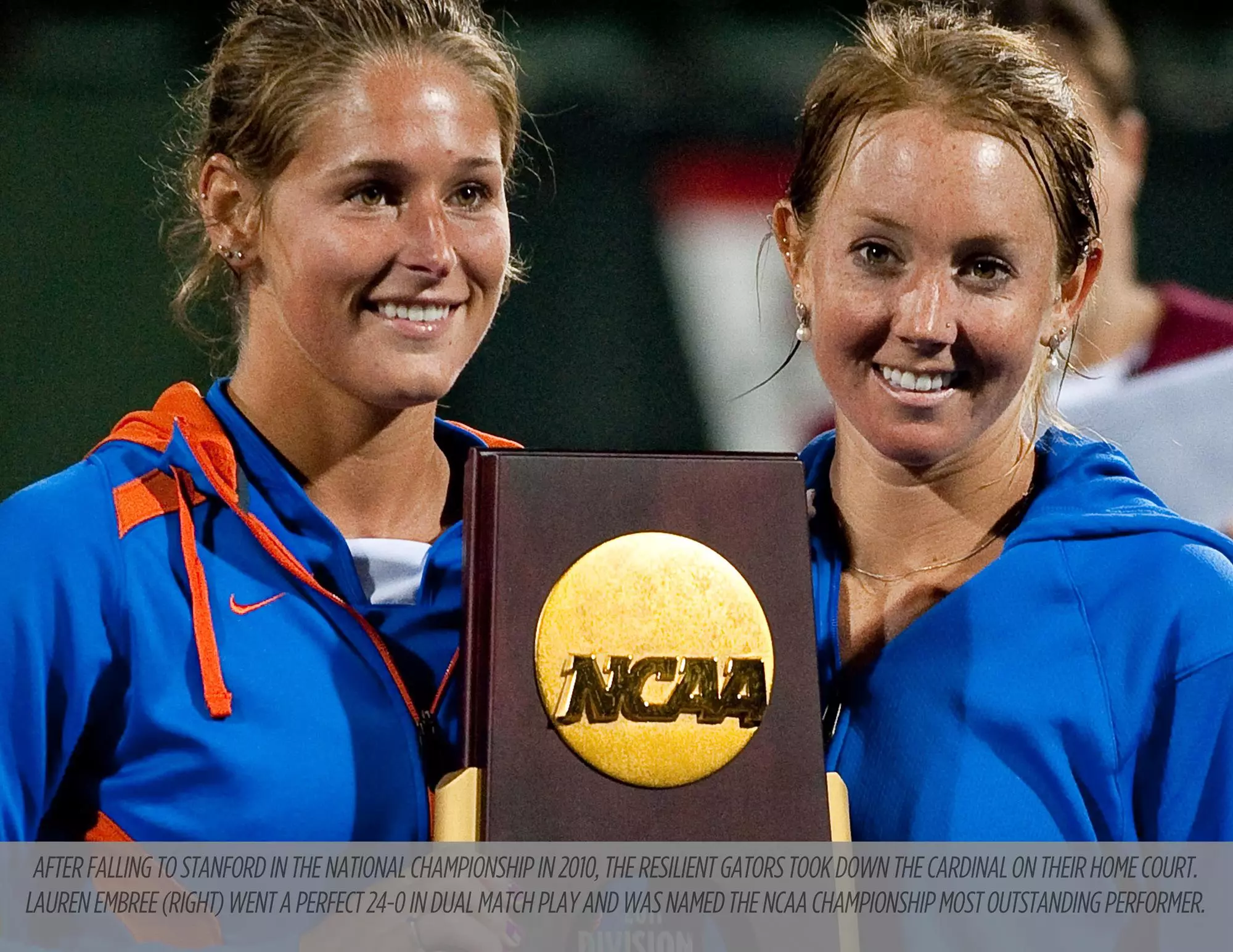 In a similar fashion to the 2011 title clash, Lauren Embree provided the match-clinching heroics and was named the NCAA Championships Most Outstanding Player, but with a little less drama as she posted a 6-4, 6-0 win on Court One to seal it for the Gators.