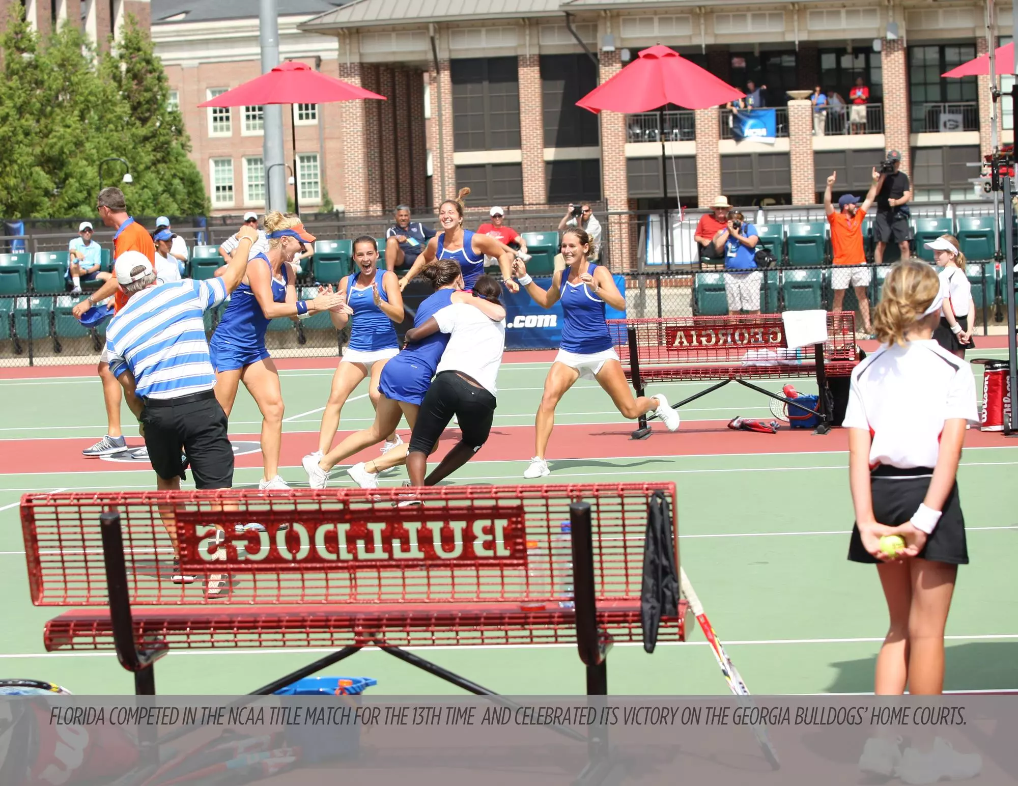Becoming just the second team in the history of NCAA women’s tennis to do so, the Gators claimed their second straight national championship with a 4-0 victory over top-seeded UCLA in 2012. Winning on the homecourt of the Georgia Bulldogs, Florida, which finished 27-1, claimed the game’s ultimate prize for the sixth time and third time in head coach Roland Thornqvist’s tenure.