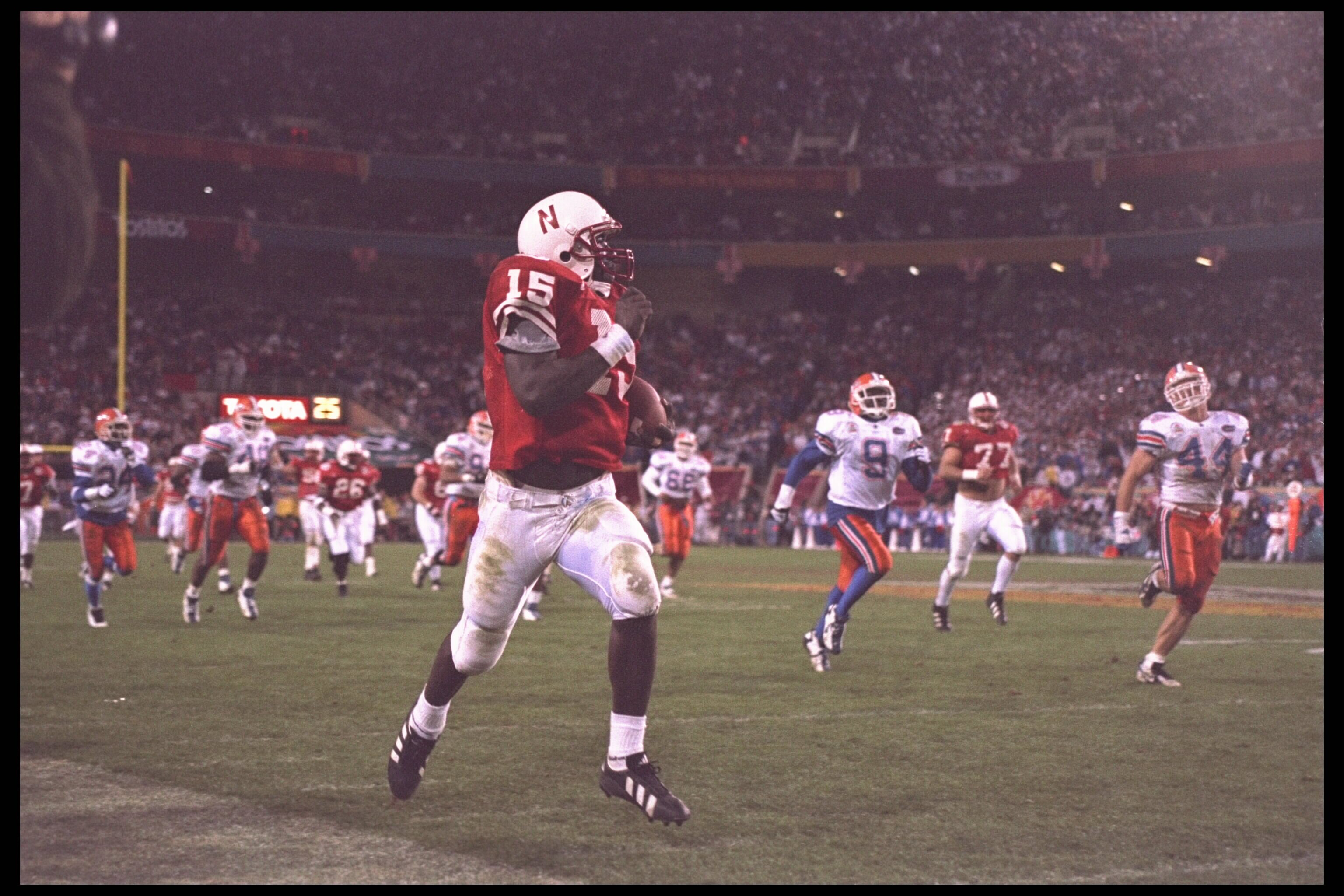 Nebraska QB Tommie Frazier rushed 16 times for 199 yards and broke no less than seven Florida tackles on his 75-yard for a touchdown in the Fiesta Bowl.