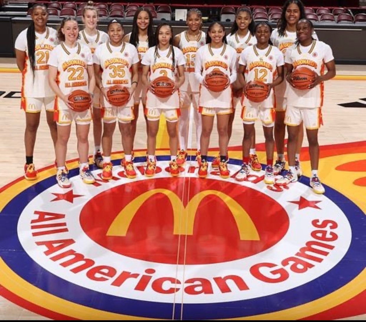 Laila Reynolds (13), back row and center, with her 2023 McDonald's All-America teammates.