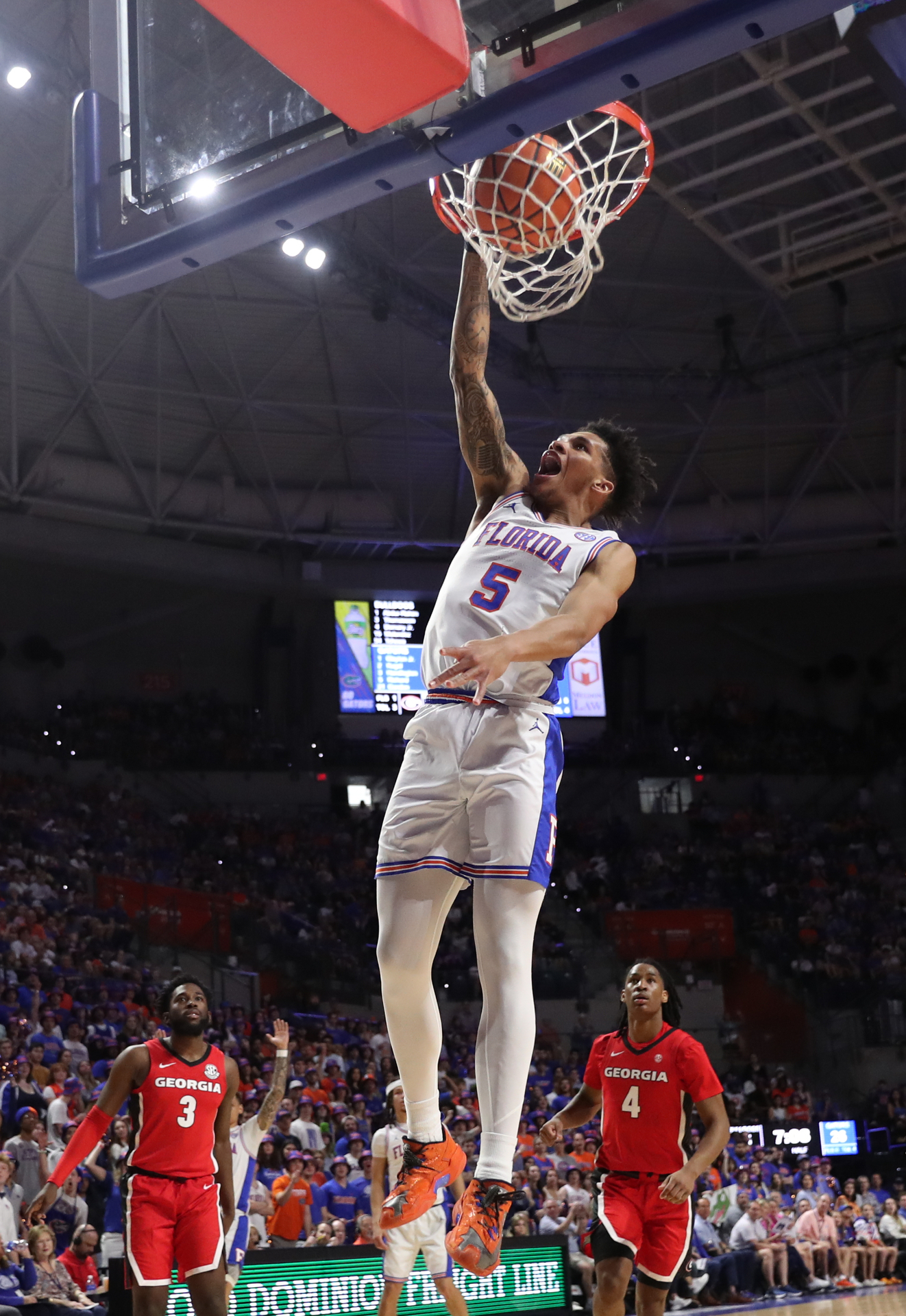 "A win's a win," UF coach Todd Golden said. "The great thing is we can learn from it positively and not have a tough weekend thinking about a brutal loss. That's part of growing as a program." Guard Will Richard (5) throws down two of his 18 points.