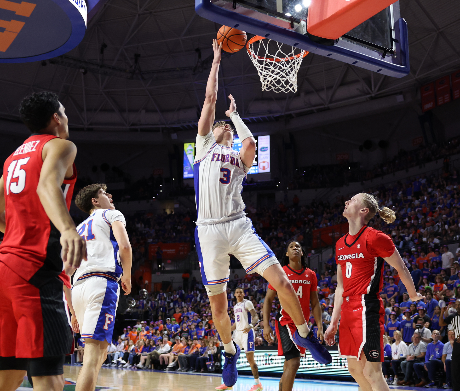 But then Clayton attacked the baseline and fed Richard for a layup. At UGA's end, Cain missed a 3-pointer and the Gators finished their next possession with a jumper in the paint from Pullin with 2:40 remaining. Georgia's next two possessions, sandwiched around a miss at UF's side, ended with a shot-clock violation and errant 3-ball, the second at the 1:30 mark and the Gators still up five.