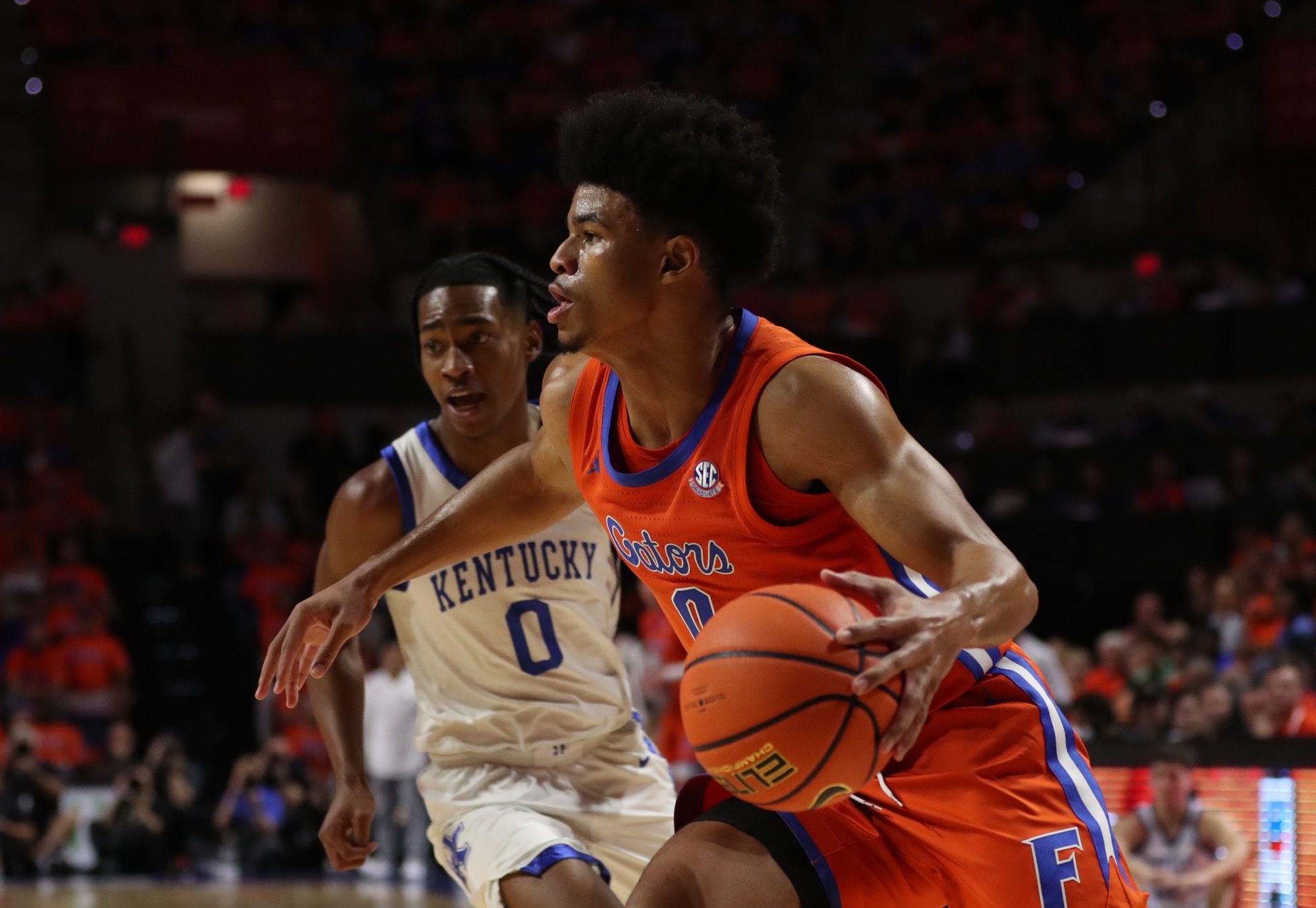 Grad-transfer point guard Zyon Pullin on the attack during UF's loss to Kentucky to open the league season.