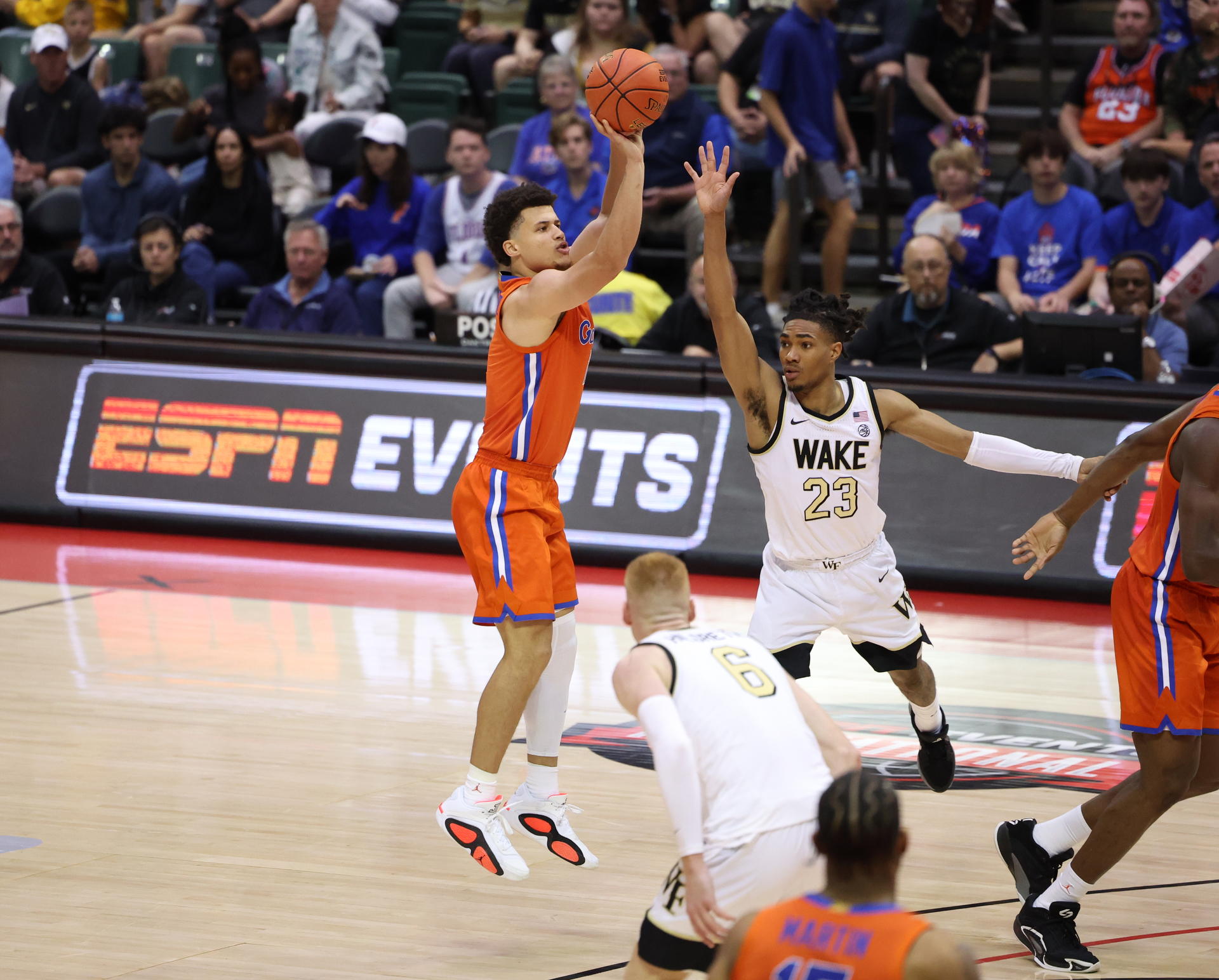 "We were playing pretty well and they weren't, but they hung in there and that's a credit to their team and their coaches," Wake coach Steve Forbes said after UF stifled his Demon Deacons with a 75-58 smothering in first-round play of the ESPN Events Invitational at State Farm Arena. "So many times, how well a team is playing on offense dictates how they play defense. I didn't think that happened and that's what kept them in the game."