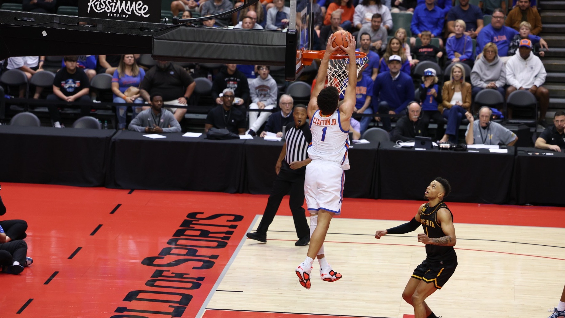 Walter Clayton Jr. scored a game-high 19 points, thanks to five 3-pointers, and was named the tournament Most Valuable Player, but the story of this game – like the game before – was what the Gators (8-0) did on defense. The previously unbeaten Shockers (6-1) came in averaging 80.8 points and shooting 45.8 percent on the season, but were held to just 29.8 percent, including 18.8 percent from 3, and converted just two of 20 shots from the 2-point area during a first half when they fell behind 19 at the break.