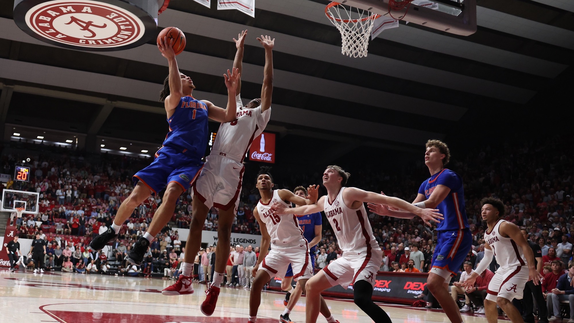 Indeed, 13th-ranked Bama hit five timely 3s over the final 11 minutes of regulation to help force overtime, then another early in the extra period, and put enough distance between themselves and the 24th-ranked Gators to finish off a 98-93 win and remain atop the Southeastern Conference standings in command in their quest for a second straight league championship.