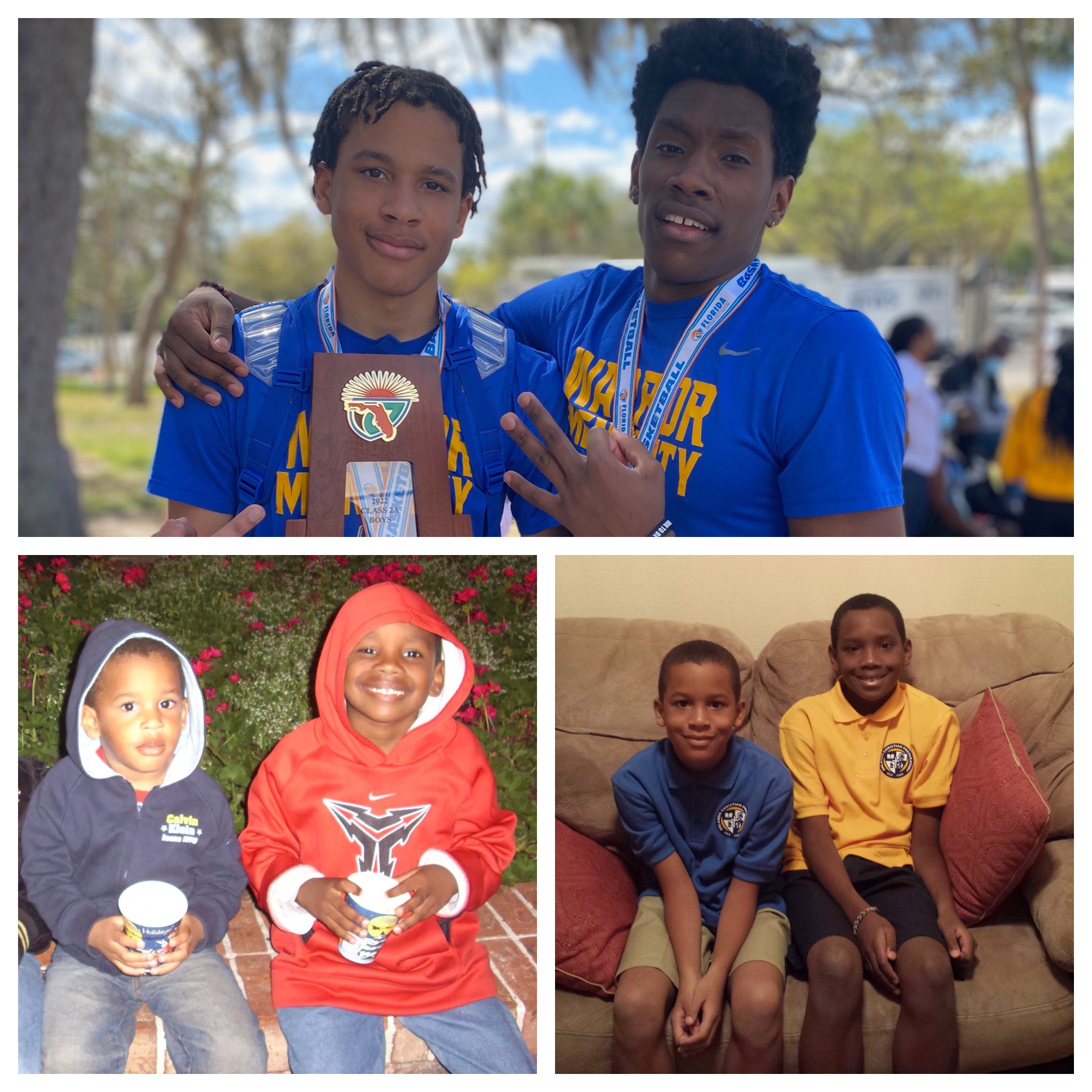 Top: Isaiah (left) and AJ (right) after winning their first of back-to-back state championships at Orlando Christian Prep.