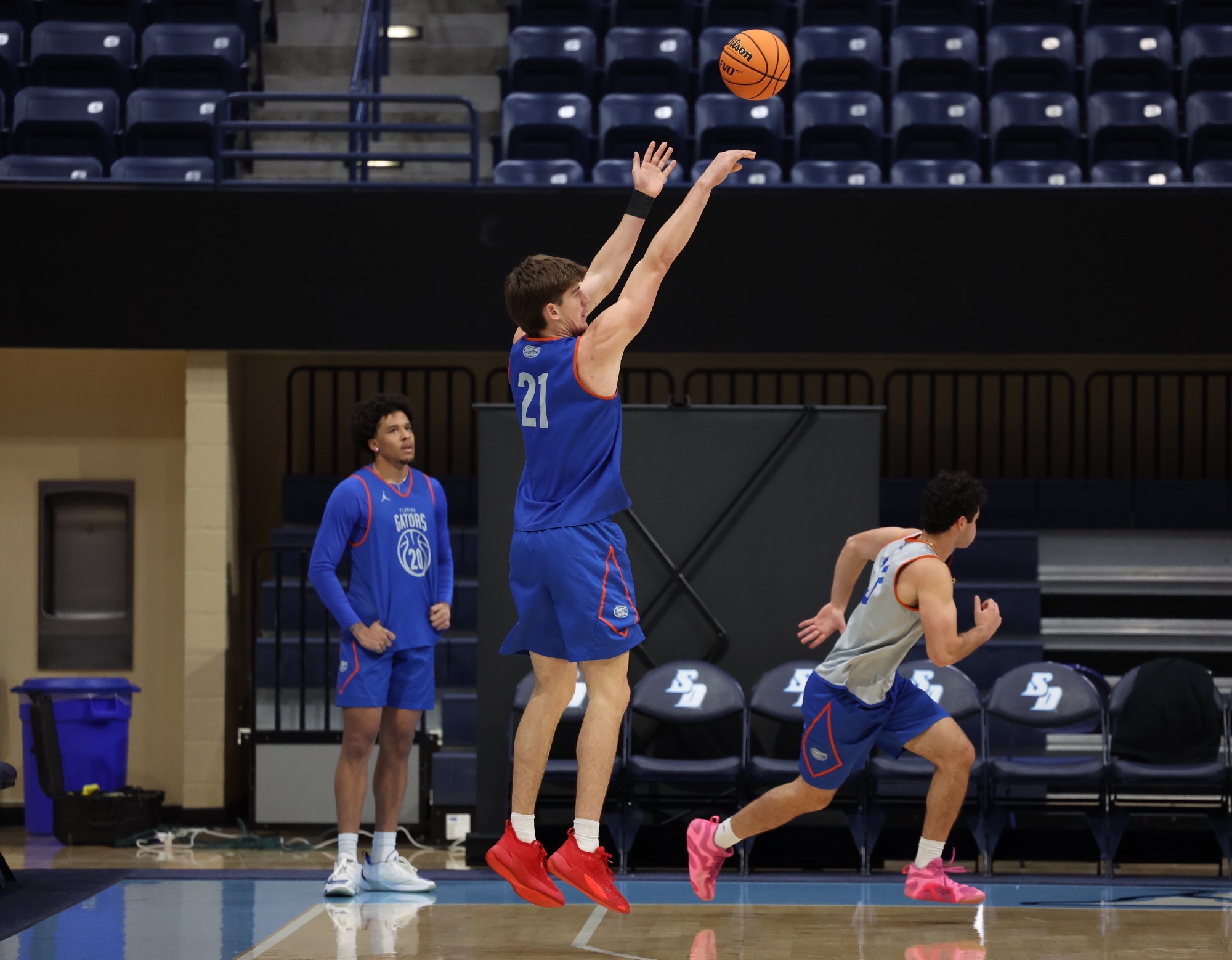 UF junior forward Alex Condon getting up shots during practice Wednesday.
