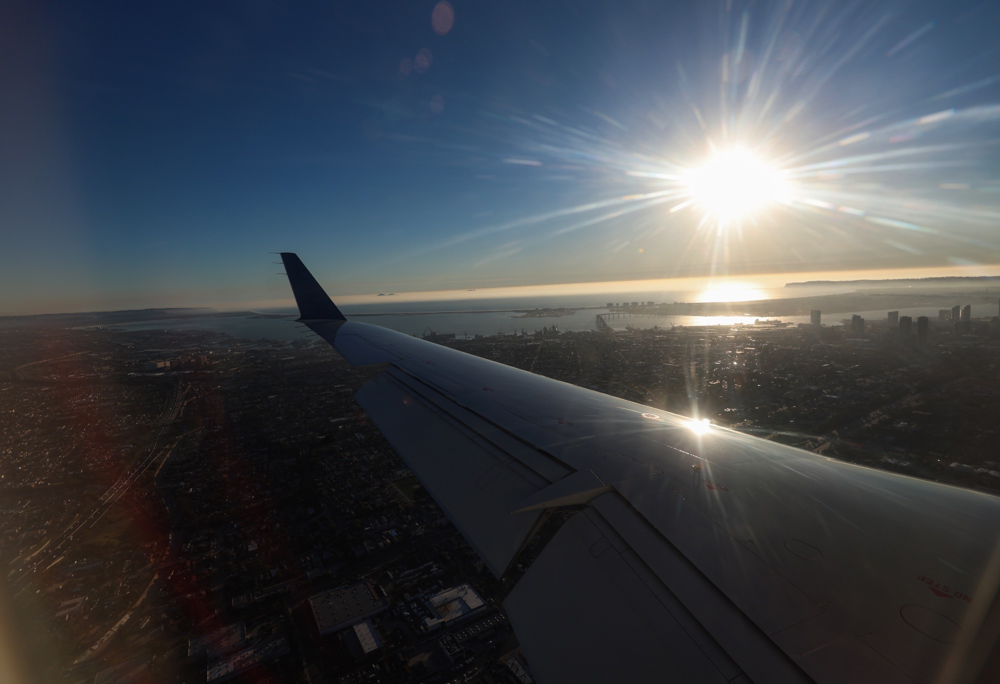 The Gators' charter flight lands in San Diego just before sunset Tuesday afternoon.