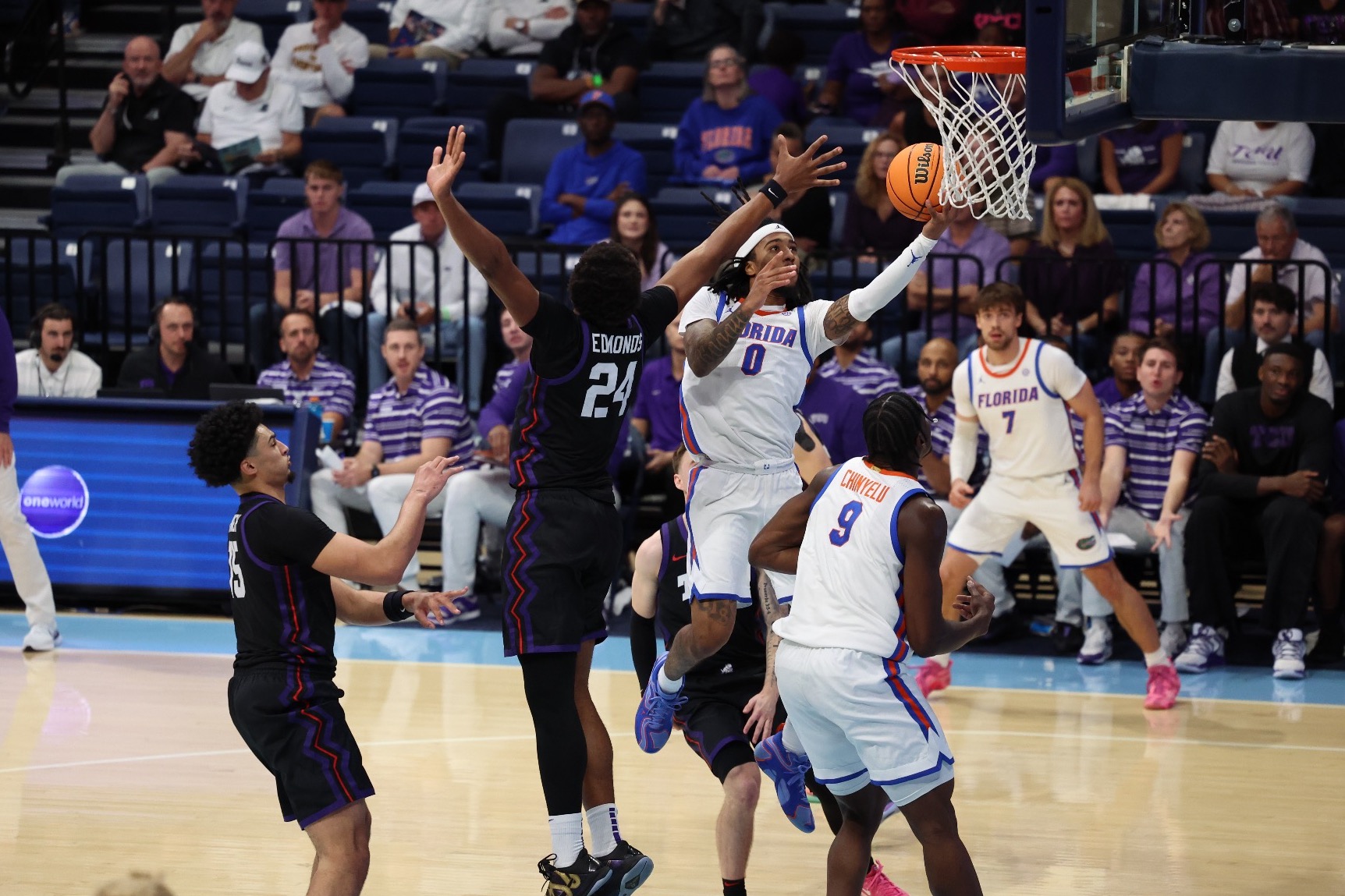 SAN DIEGO – Texas Christian guard Brock Harding broke a tie game with a short jumper with 50 seconds to go, then hit four free throws over the final 13 seconds, as the Horned Frogs wiped out a 10-point second-half deficit Thursday to upset 10th-ranked and reigning NCAA champion Florida 84-80 in opening-round play of the Rady Children's Invitational at Jenny Craig Pavilion.Junior guard Urban Klavzar led the Gators with 20 points off the bench, including four 3-pointers, while junior forward Thomas Haugh scored 20 as well, but the story of the game was how TCU's aggressive defense forced 19 turnovers (that led to 22 points) and how the Horned Frogs got easy looks against the UF defense on the way to shooting 58% in the second half and going 15-for-20 (75%) from inside the 3-point line.