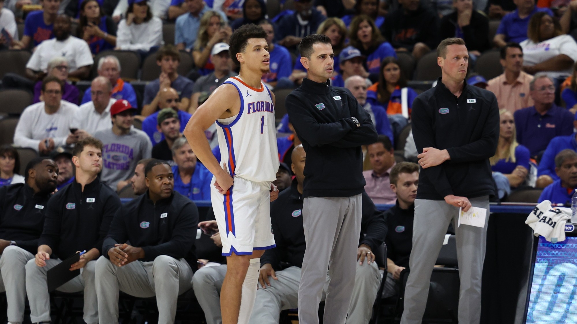 GAINESVILLE, Fla. – With inside a minute to play (and the outcome no longer in doubt), the Florida Gators broke through the Tennessee full-court press Sunday. Forward Thomas Haugh dribbled toward the baseline, then lobbed a perfect alley-oop pass at the rim, where guard Alijah Martin elevated for a two-handed slam-dunk that sent the UF section behind the team's bench at Bridgestone Arena into delirium.