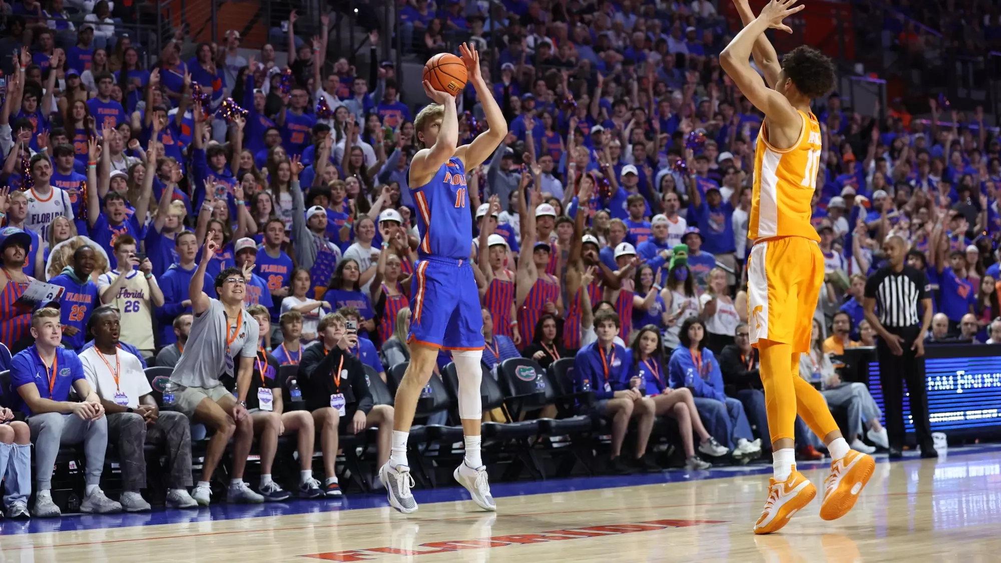Backup guard junior Urban Klavzar scored 15 points, thanks to a trio of 3-pointers, while junior wing Thomas Haugh had 13 points, junior forward Alex Condon had 11 points and seven boards, and senior guard Xaivian Lee had 10 points to give UF six players in double-figure scoring. Florida shot 48.4% for the game, but also defended the Volunteers at 42.9% while forcing 18 turnovers that turned into 30 points.