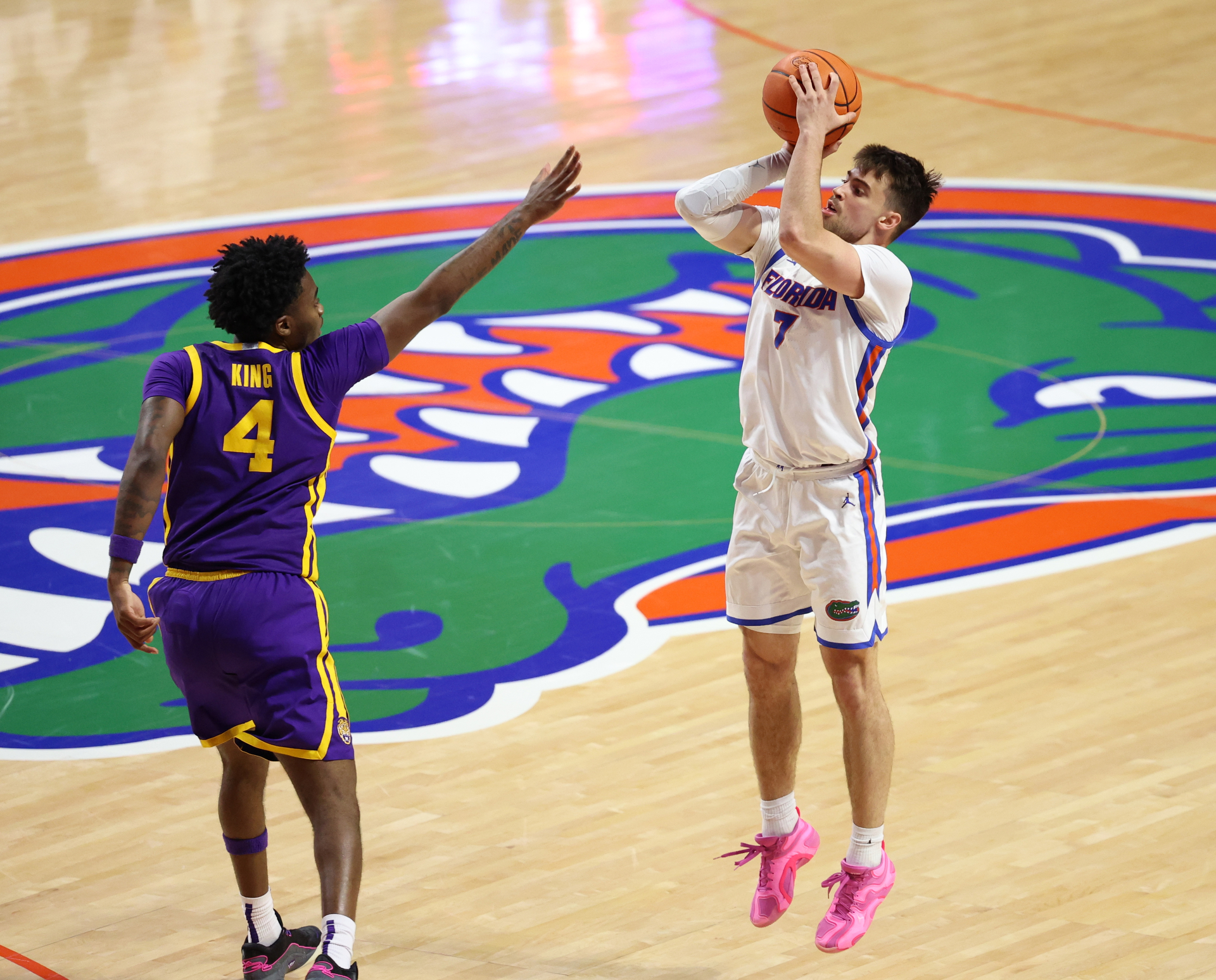 For the Gators (14-5, 5-1) those traits are contagious. UF, which tops the nation in rebound margin, pulverized LSU (13-6, 1-5) on the boards with a 50-30 overall advantage and 24-7 edge on the offensive end – 11 from Chinyelu – that led to a 21-10 advantage in second-chance points. A couple of those re-do's were 3-pointers, with backup junior guard Urban Klavzar making the Tigers pay with a career-best five 3s on his way to a team-high 18 points.