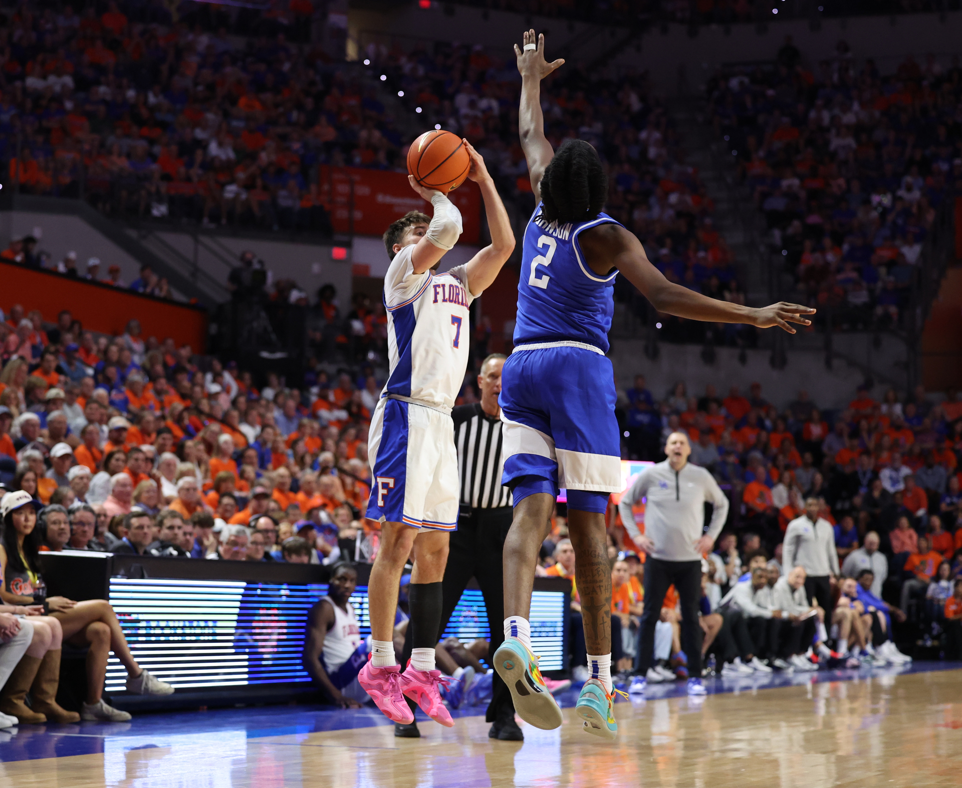 The guard duo of Xaivian Lee and backup sharp-shooter Urban Klavzar combined for 41 points and nine 3-pointers to pace five UF players in double-figure scoring. Lee, the Princeton transfer, went seven of 12 from the floor and four of seven from deep on the way to 22 points, besting his previous SEC high of 18 set Wednesday in the team's blowout win at Georgia. Klavzar, meanwhile, set his single-game SEC best by drilling five 3s on 11 attempts on the way to 19 points.