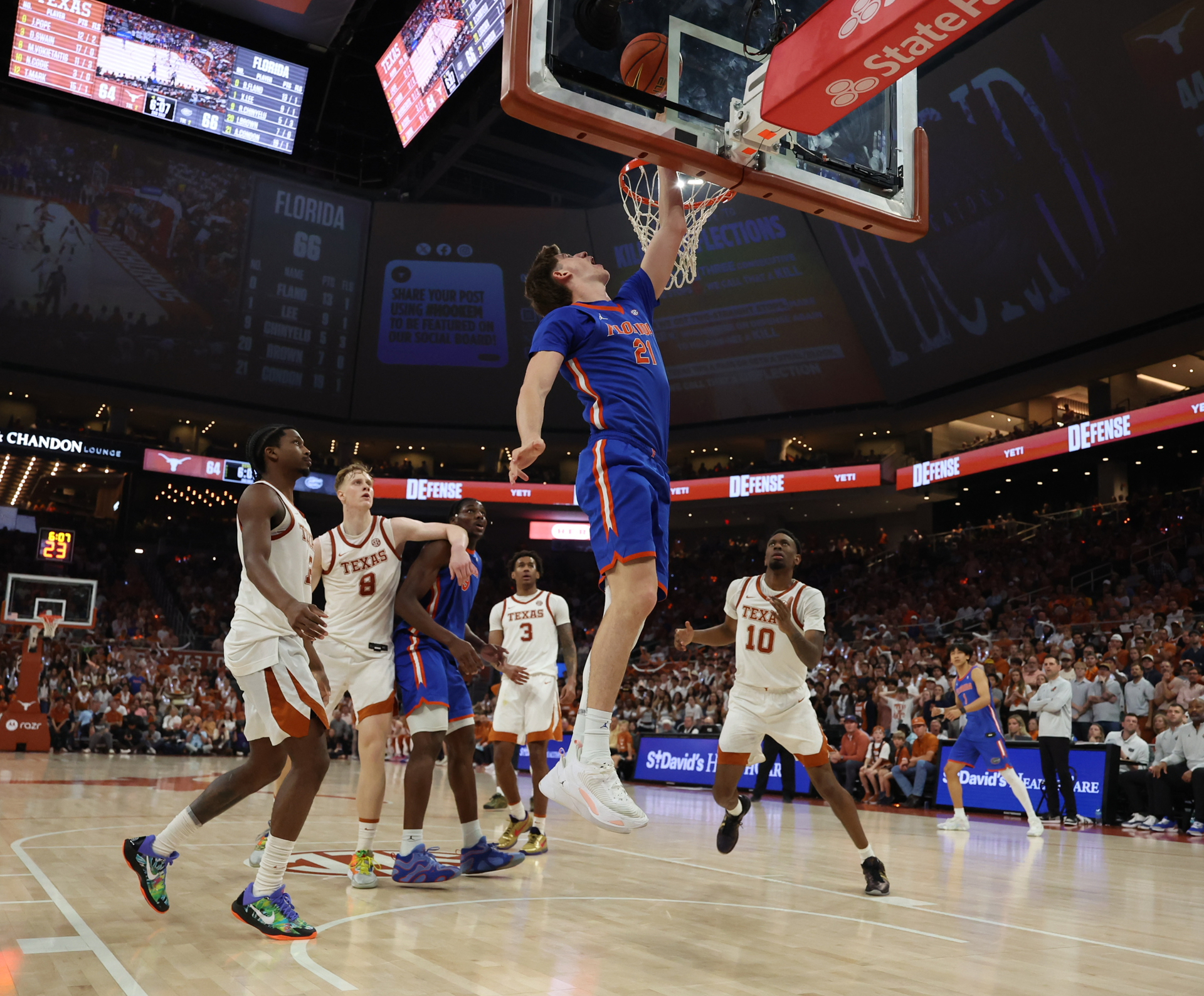 From there, the Gators finished the game on a 23-7 avalanche of shots, steals and dunks that included makes on six of their last eight shots versus the Longhorns going 0-for-4 with five turnovers.