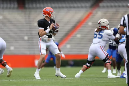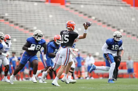- vs. Texas A&M: Earned the start at quarterback while rotating and completed 12-for-15 with 195 passing yards, a touchdown to Elijhah Badger (first as a Gator) and an interception. Surpassed 3,000 career passing yards as a Gator in the game.